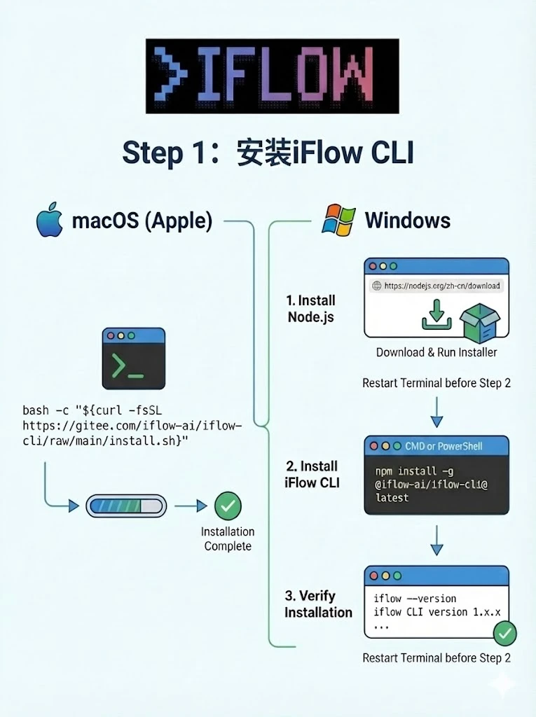 1️⃣环境安装。Mac 直接一行 bash 搞定,Windows 稍复杂一点(需先装 Node.js)。整体非常轻量。