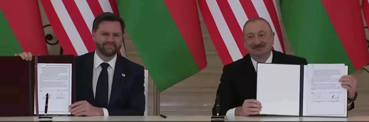路透社消息,当地时间10日,正在阿塞拜疆访问的美国副总统万斯宣布,美阿两国当天正式签署了《战略伙伴关系协议》,并在能源、经贸、安全等多个领域,达成数十项重大合作项目。 阿塞拜疆总统阿利耶夫,在出席签字仪式时表示,巴库很高兴能和美国政府达成战略互信,阿方将与华盛顿开展积极合作,共同维护高加索地区的安全和繁荣。 阿利耶夫当天还进一步透露,按照阿美两国已签署的防务备忘录,华盛顿将向巴库出售多种先进武器,两国军队也将定期进行交流互动,并组织联合军演。