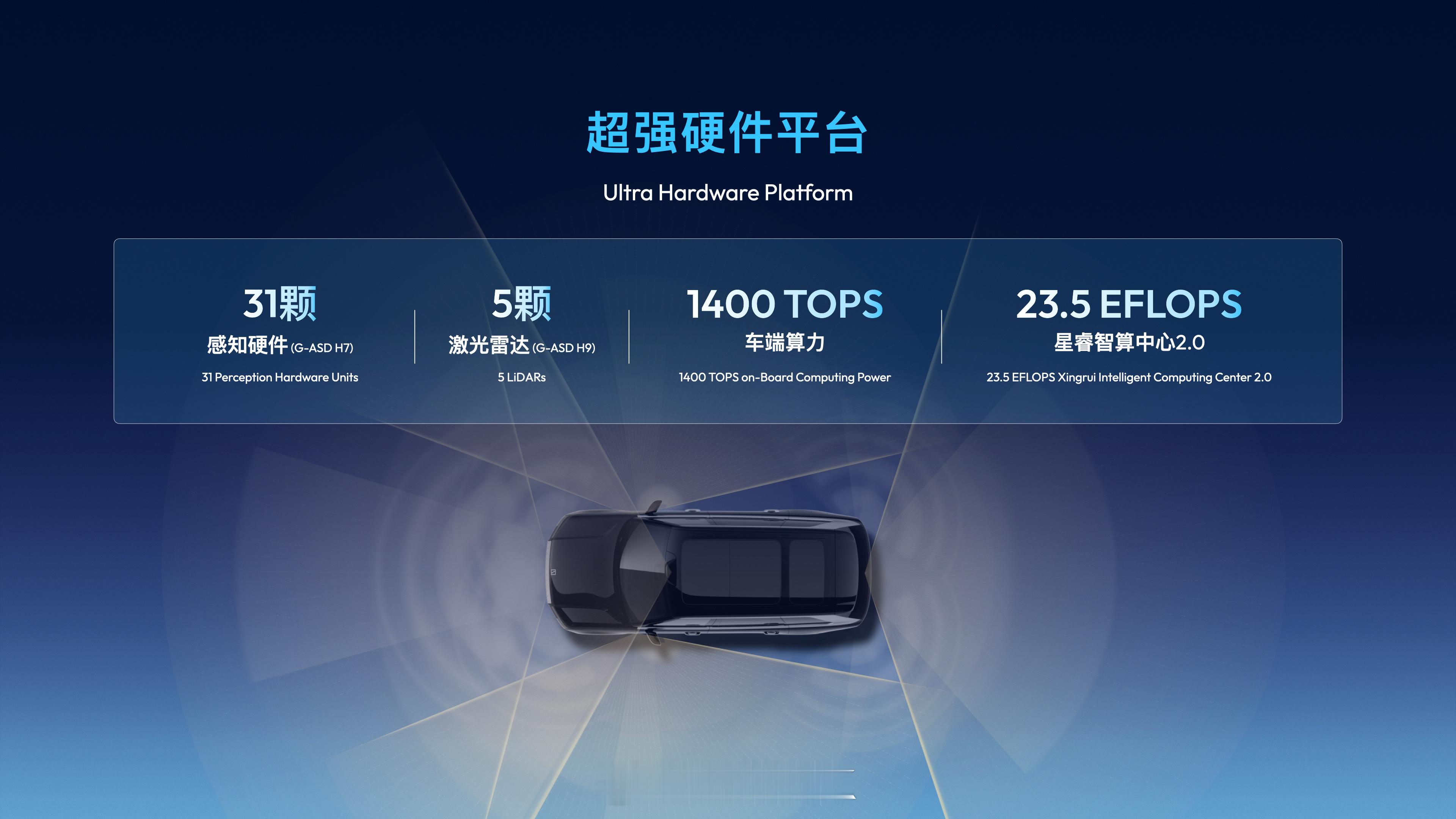 而极氪9X高配版更率先搭载千里浩瀚H9方案,行业首度集成双Thor-U芯片,车端算力达到1400TOPS,5激光雷达和多达43个感知元件。