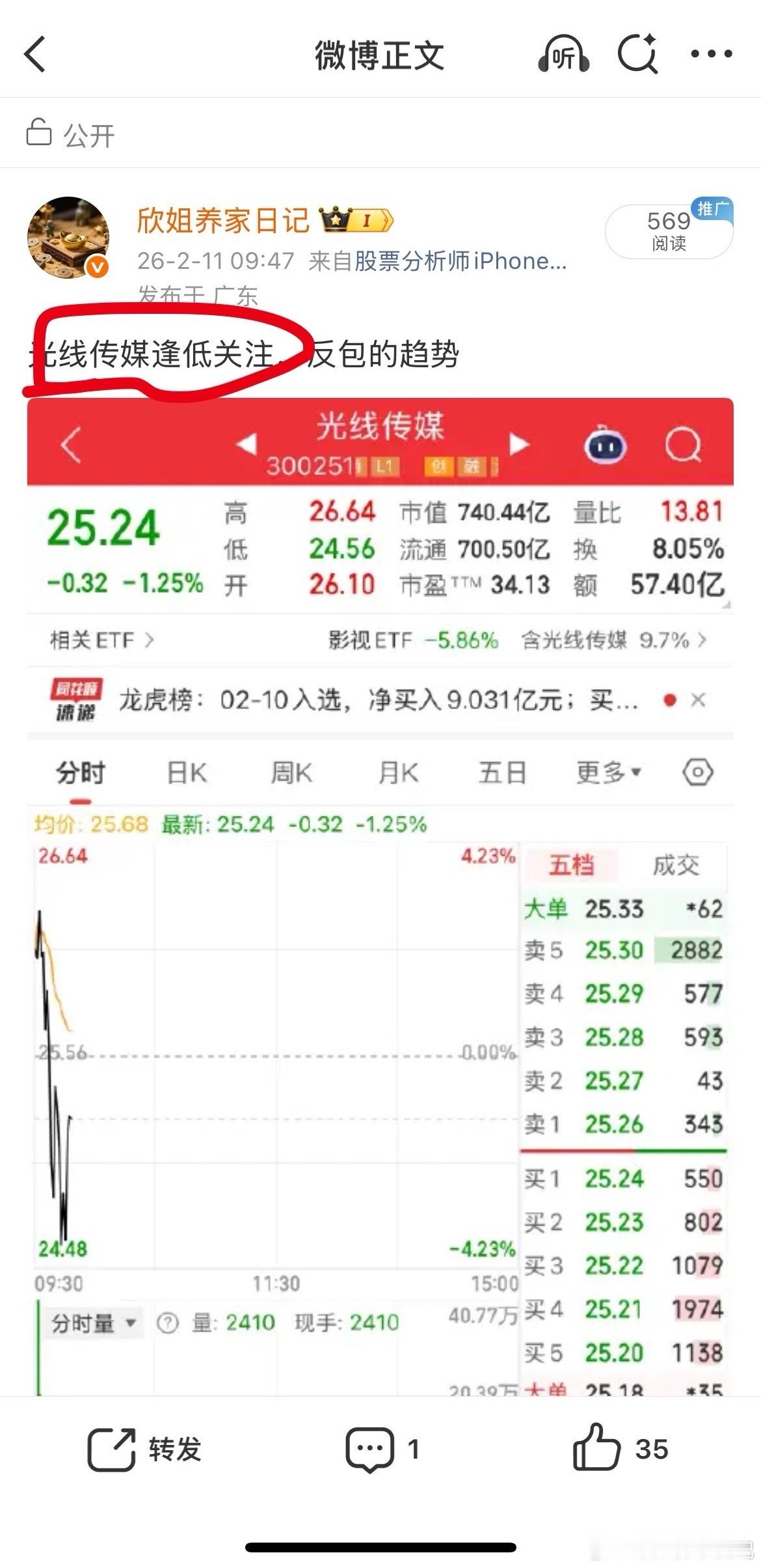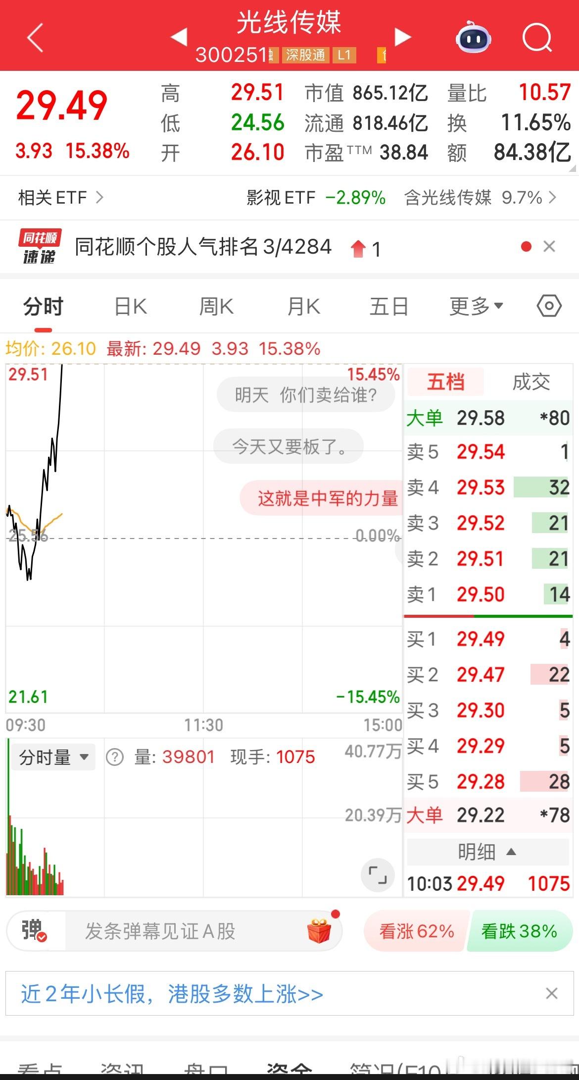 光线传媒这是冲涨停的趋势!牛逼