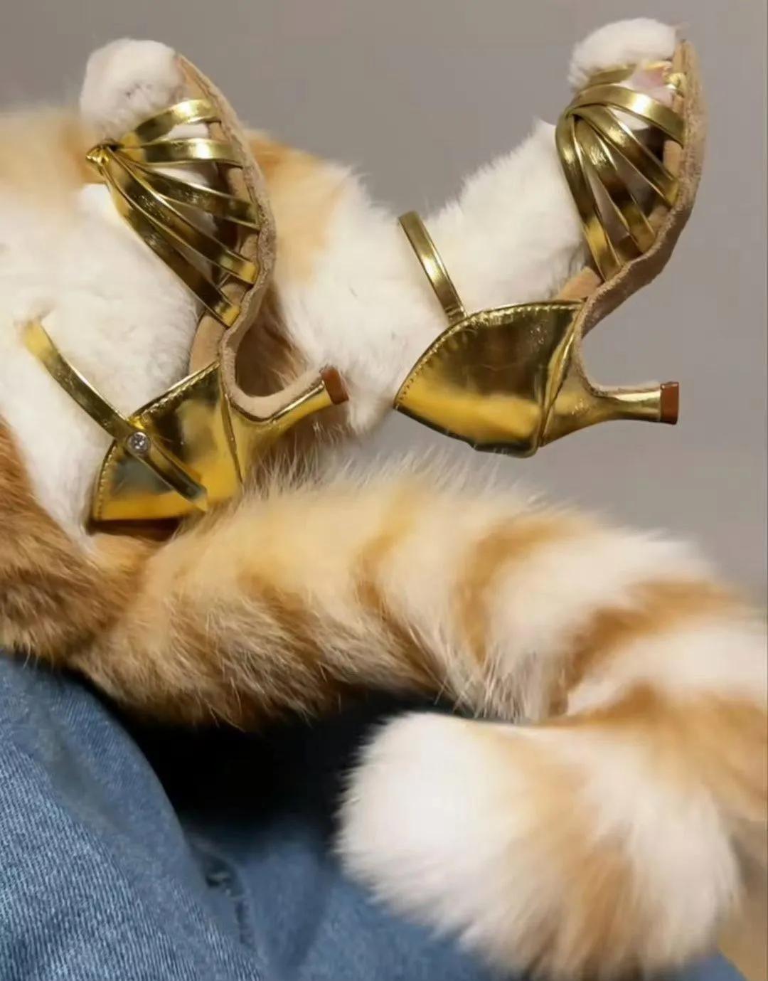 给猫咪买了双高跟鞋,穿上还挺好看!要不要跟她共舞一曲?[呲牙]