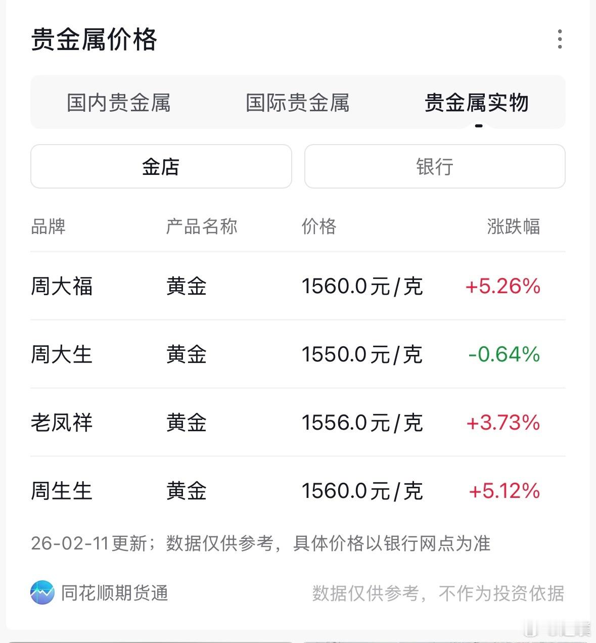 金饰价涨到1564元这两天金价基本维持在5000美元左右,不知道年前还会不会大涨了?