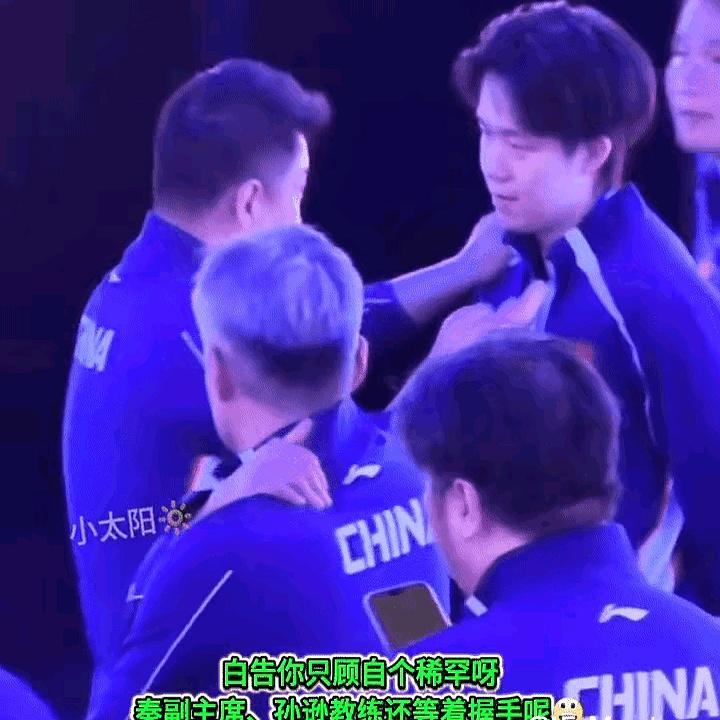 赛场上有一幕挺好笑的。 王楚钦夺冠后正忙着庆祝,白告一个人把他围在身边,后面秦志戬和孙逊两位教练还在等着握手。 秦教练看了半天,脸色有点不高兴,干脆转过头去不看。 看得出他觉得有点被忽视。 大家一阵沉默,氛围有点尴尬。 其实这类场面常见,年轻选手庆祝时没盯住场面,礼节容易被忽略。 希望以后比赛上,大家能多留意一下顺序和礼貌,既尊重长辈也顾及队友,现场会更和谐。 现场有人憋笑有人摇头,还有记者私下点评,风里带着笑。 运动员情绪高涨难免冲动,教练们看在眼里会较真。 把这次当成提醒,下次注意节奏,既热闹又有风度。 体育场上的礼节不是形式,而是对同行和观众的尊重。 观众记住的不只是胜负,也记住选手的风范。 希望每一次庆祝都能给人留下好印象。