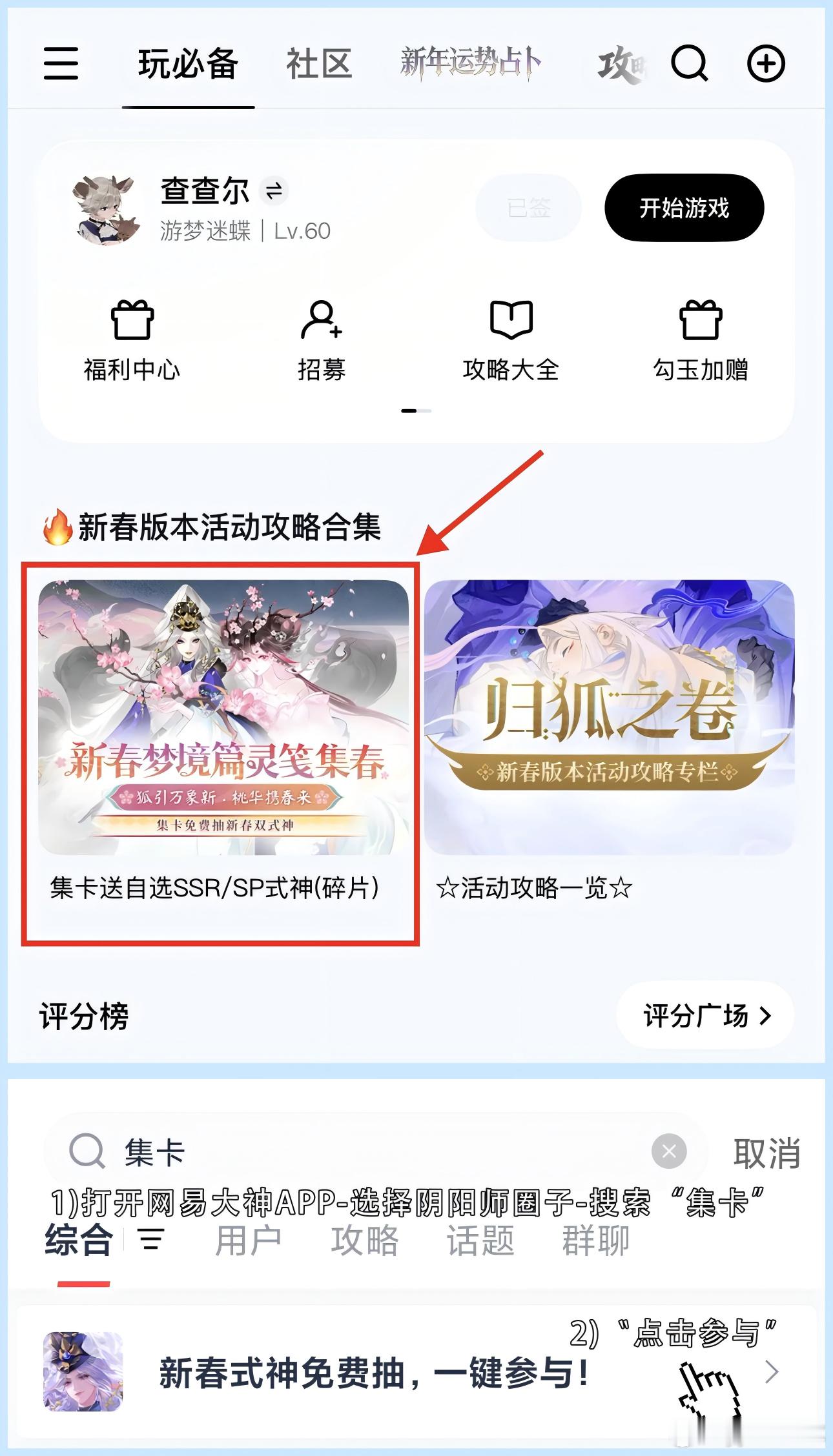 ■卡片获取方式:①大神首页进入活动(图一红框),或搜索栏搜“集卡”,也能跳转②进入活动后,绑定角色,获取抽卡次数(完成任务、邀请好友均可获得次数)③可在该博文评论区互邀得卡片,最多邀请10位好友(得最多14次抽卡次数)超话创作官马上游福阴阳师马年春节版本 抽奖详情