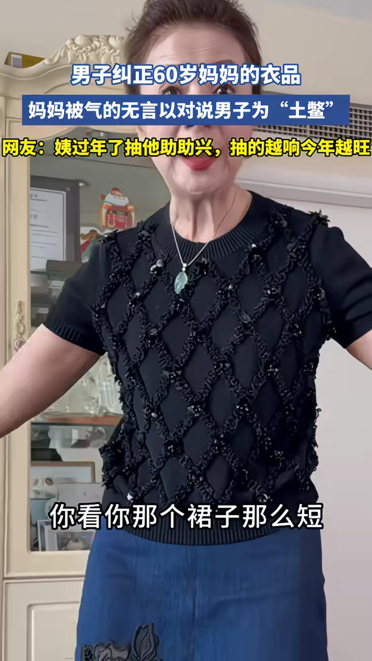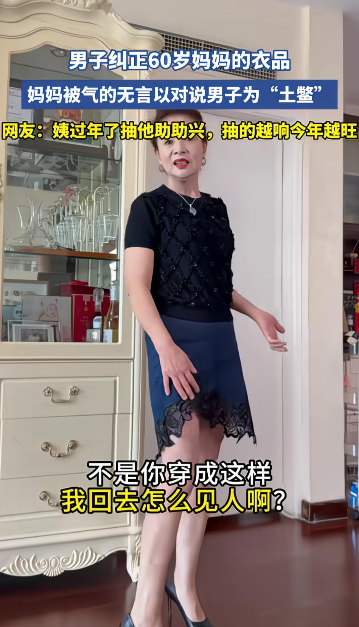 大家来评评看,这一身好看吗?没想到到儿子的嘴里成了老不正经 阿姨60岁了,身材挺拔皮肤光滑,妆容得体,这一身搭配也是优雅大方,没想到儿子的评价是老不正经,会让自己抬不起头来。这么大年纪了,不该穿短的裙子,应该把自己裹得严严实实的,气的阿姨骂:我怎么生了你这么一个老封建 这么漂亮,会保养会打扮的阿姨,还被儿子吐槽嫌弃,果然,男人都喜欢看别人家的美女打扮的漂漂亮亮的,到自家的,不管是老婆还是妈妈,丑一点无所谓,打扮了漂亮了那得捂着 谁规定到了这个年纪必须穿的跟粽子一样了,爱美是每个人的天性,不分年龄,也没有统一标准,只要场合适宜,大方得体就值得被尊重,而不是指指点点