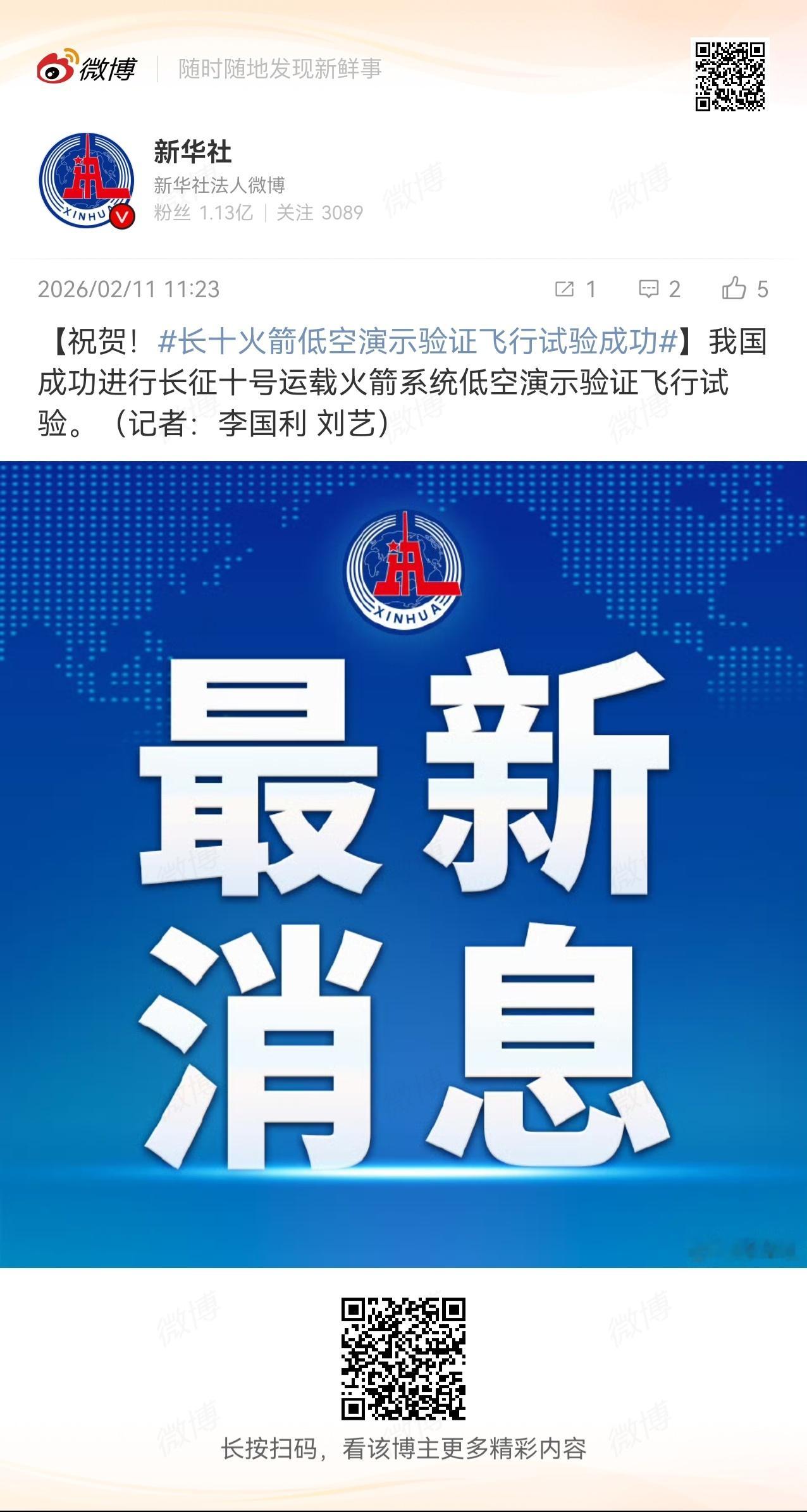 长十火箭托举梦舟飞船点火升空