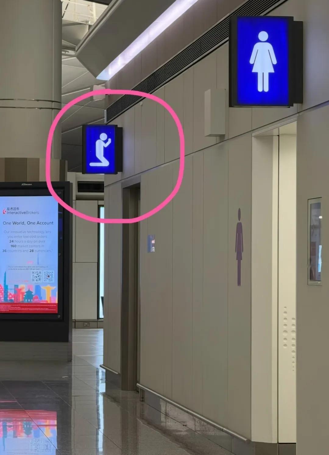 第一次在机场看到这个标识牌,屋里面有几张毯子放在地上,这间屋子是做什么的?