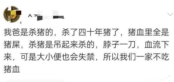 农村杀猪流程:按猪,绑猪(我们那都是绑在独轮车或者长板凳上),木棍捅嘴里打开气管,一刀气管放血下边接猪血,扔大锅里开水烫刮毛,吊起来开膛取出内脏,挤干净大肠,分割,售卖。 没见过把猪吊起来杀的,一头猪几百斤,活的时候吊起来?