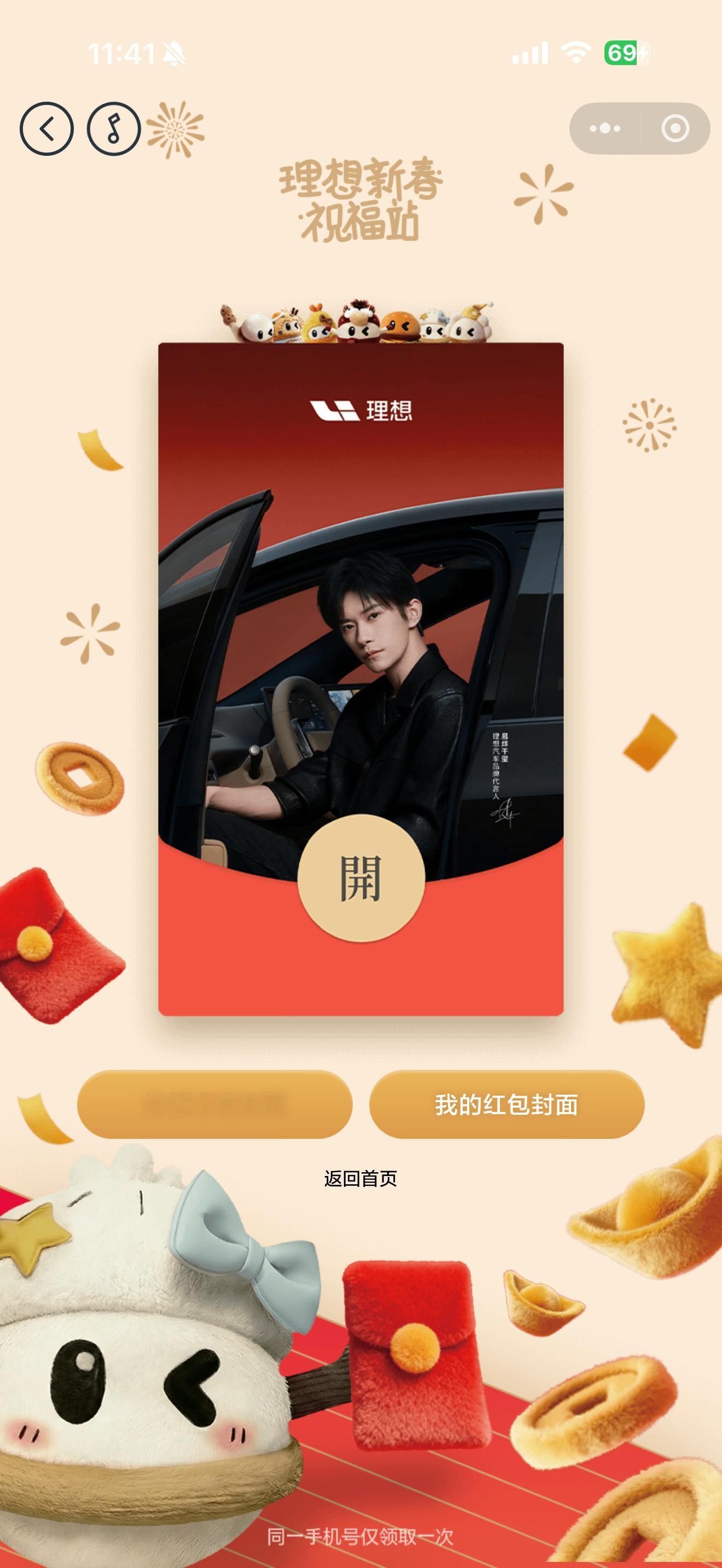 理想同学新春游园会正式开启,即日起至2月23日,进小程序和理小马一起穿梭四大站点,领理想汽车代言人主题限定红包封面,收集马力值,抽大奖(Livis眼镜、车模、理小马限定包、电影票)。