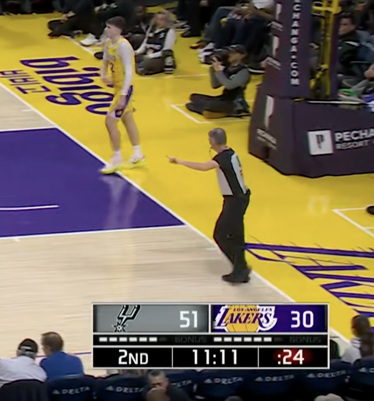 克内克特防守没跟上,雷迪克暂停,湖人落后23分了!马刺vs湖人