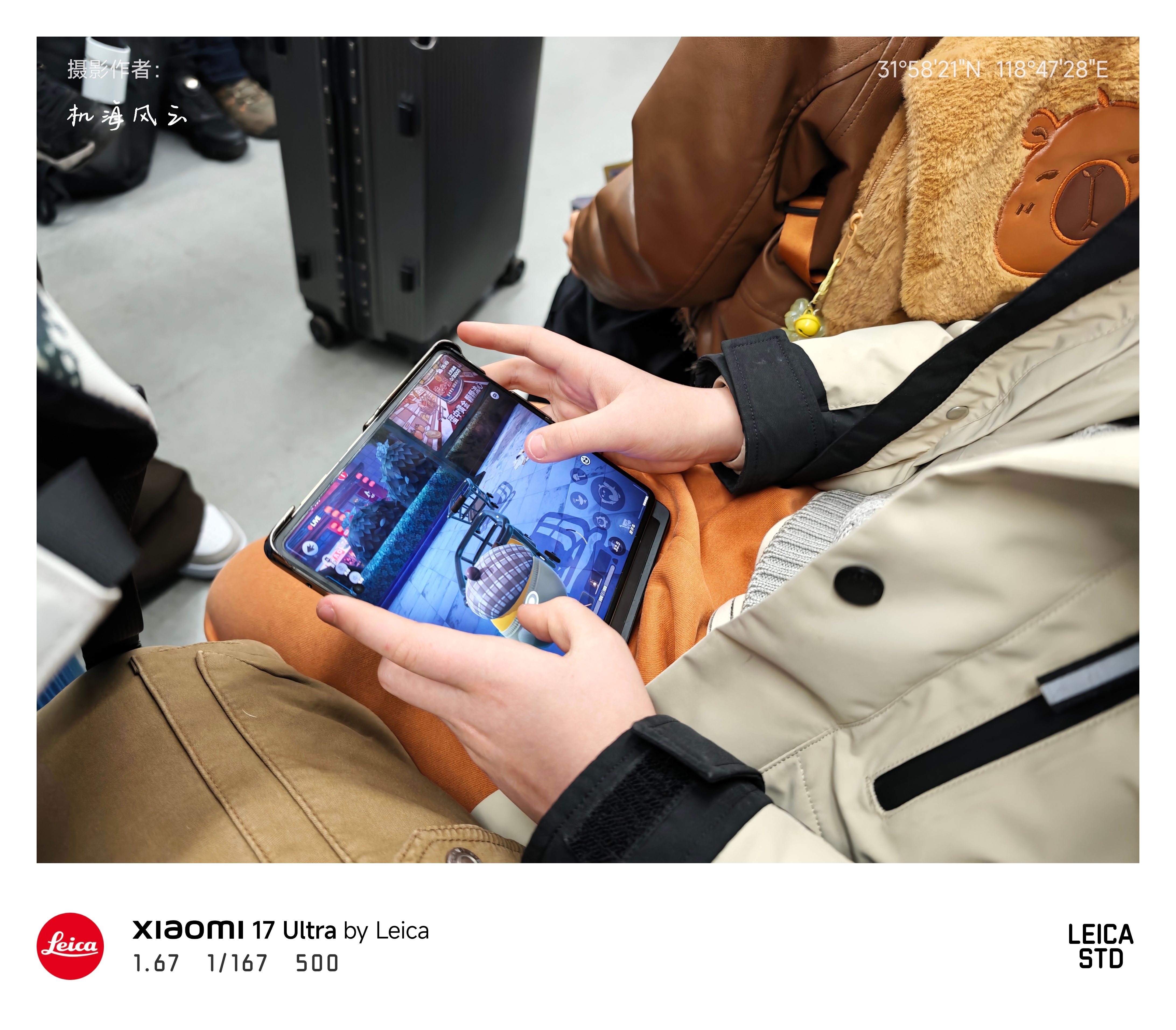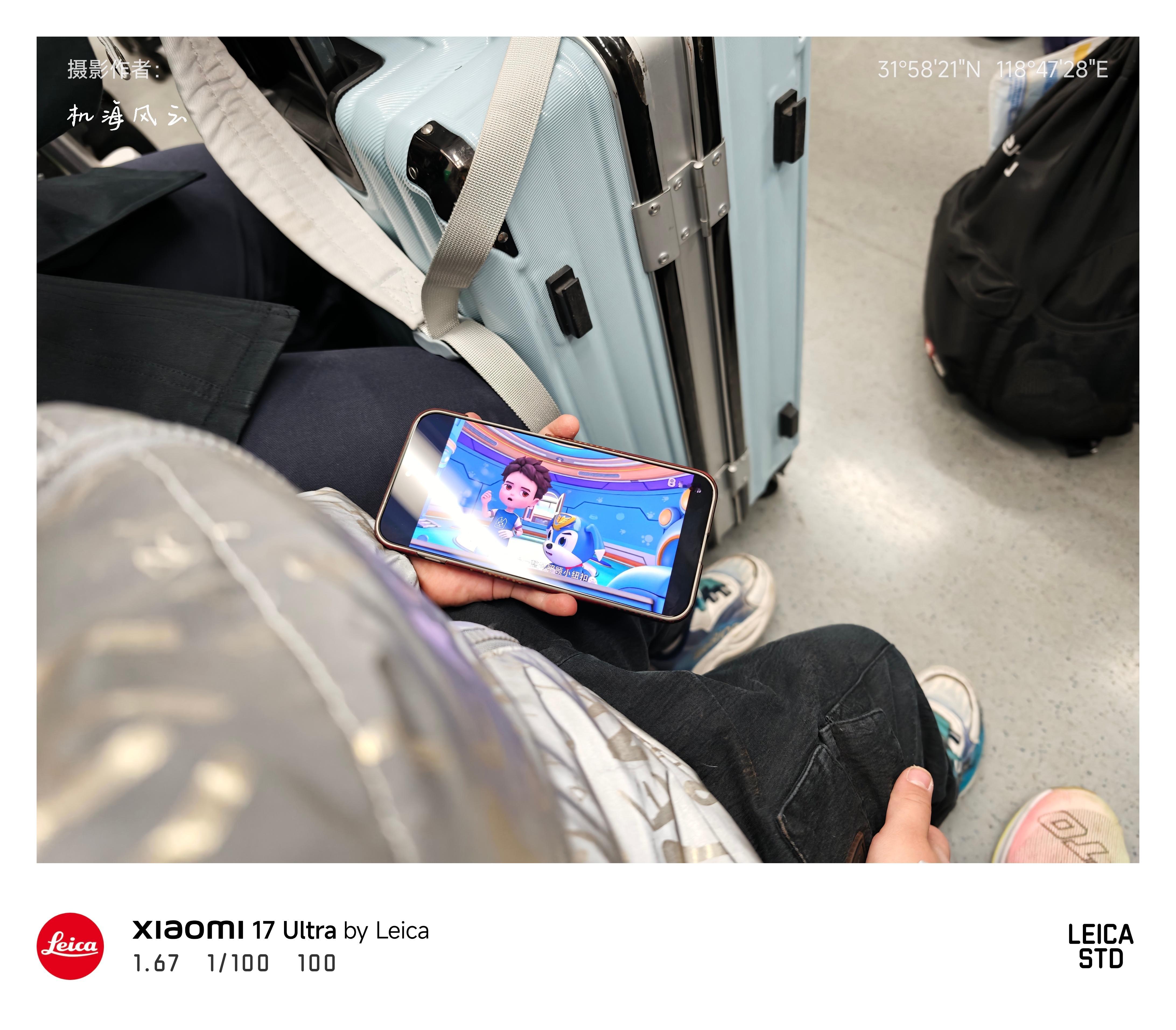 去机场的路上,一个拿我的折叠玩蛋仔,一个拿我主力机看奇巴布,我只好拿出便携式智能📷17 Ultra刷会微博了🌝 南京·南京南站