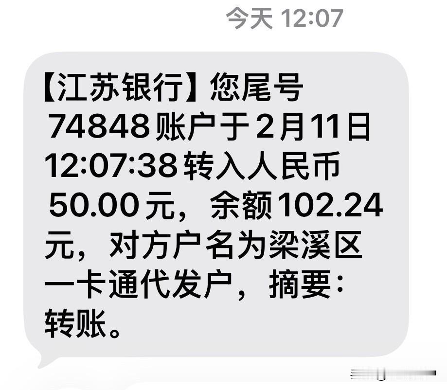 过节费没有等来,尊老金倒提前发放了,中午一条短信老妈的尊老金到账了,本来要20号左右,马上要过年提早了,