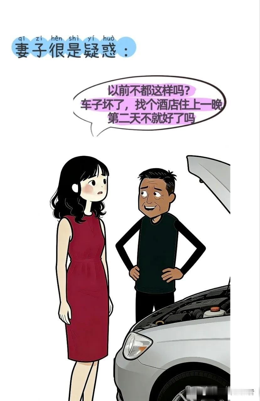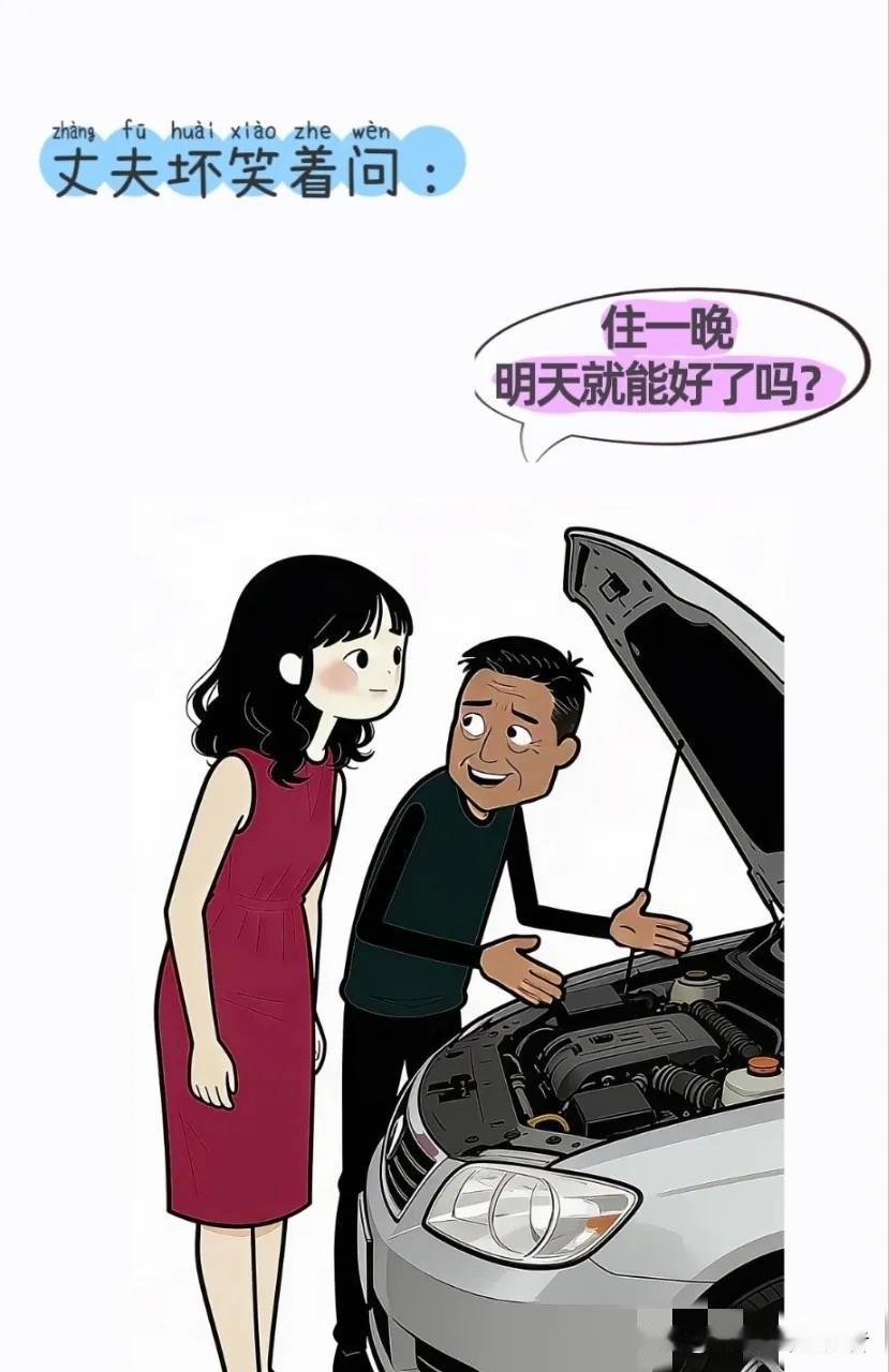逗你笑:夫妻俩开车回家过年,车坏了。妻子:赶紧找个酒店住一晚吧,明天就好了。丈夫:住一晚明天就能好了吗?妻子疑惑:以前不都这样吗
