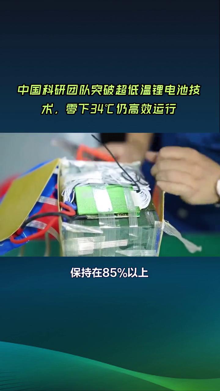 t:中国科研团队突破超低温锂电池技术,零下34°C仍高效运行。 零下34°C锂电