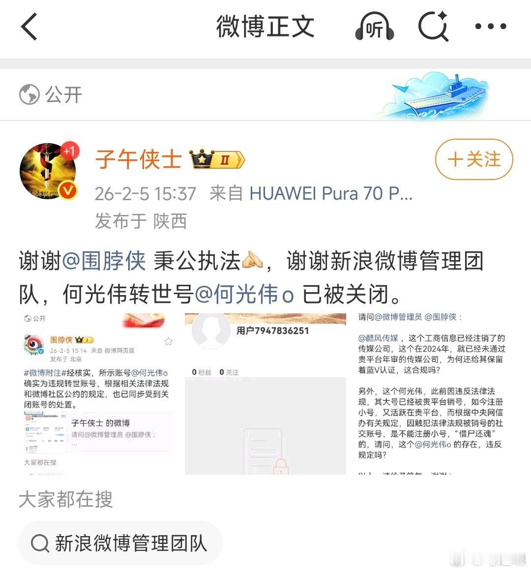 据说何光伟的账号被我大西安网红大V“子午侠士”投诉没了;罗翔也清空账号退网了。
