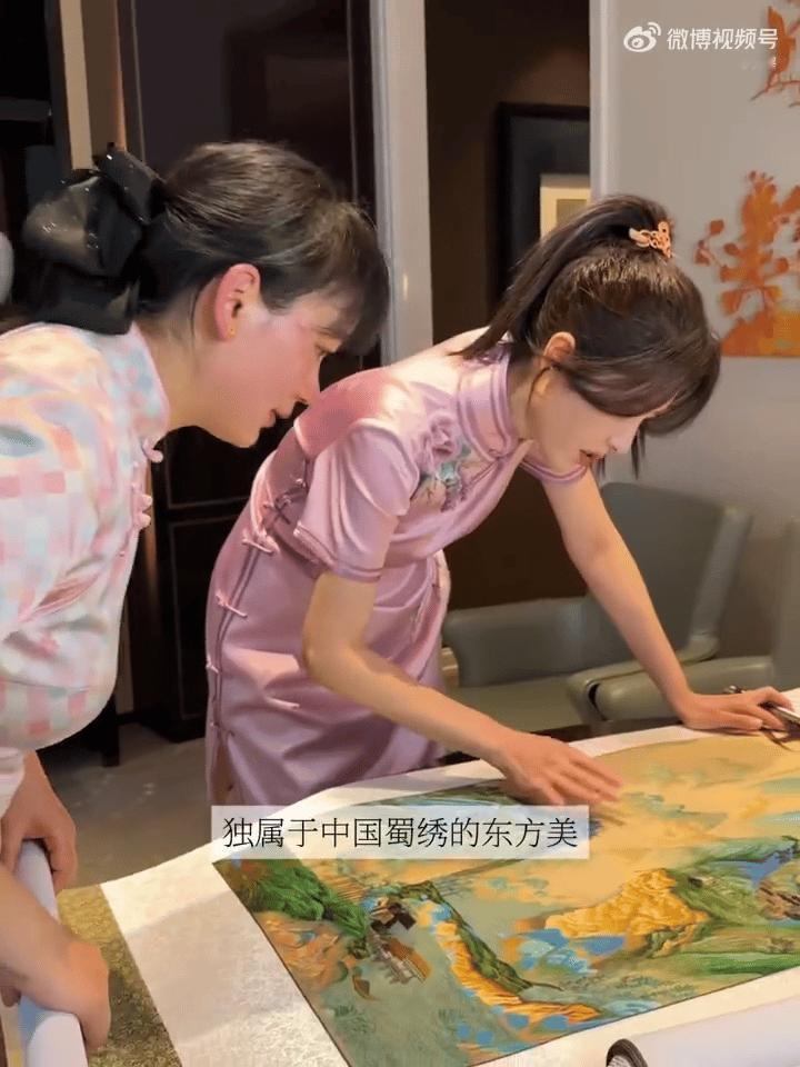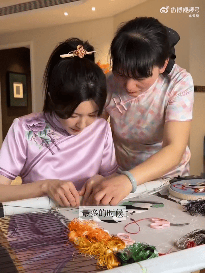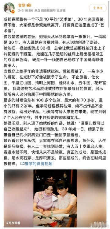曾黎写下575个字安利非遗蜀绣 看到曾黎上身蜀绣旗袍还写长文安利,瞬间被她的热情感染!能把丝线劈成32根,这技艺就像千瓣莲般细腻美妙,一针一线都是传承的温度,30年匠心让传统技艺在衣袂间绽放光彩,爱了!