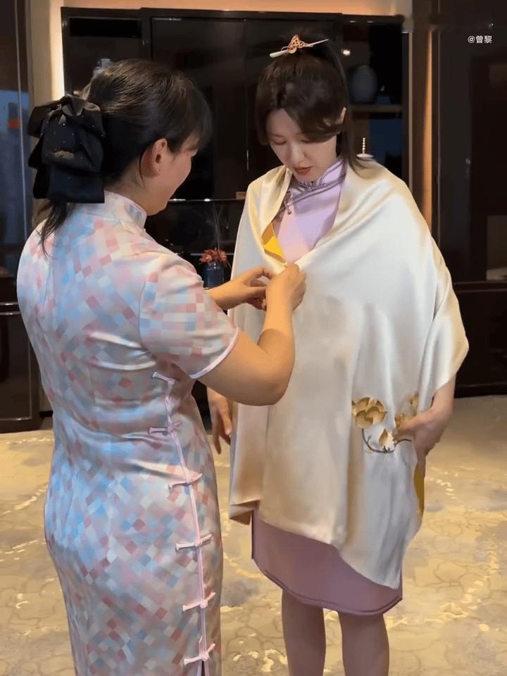 曾黎写下575个字安利非遗蜀绣看到曾黎上身蜀绣旗袍还写长文安利,瞬间被她的热情