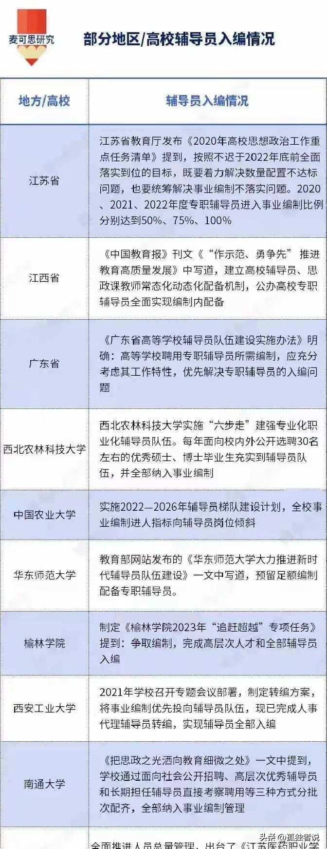 高校辅导员入编绝不是好事!看到一个消息,教育部要持续推进高校辅导员入编,以解决当前很多辅导员是劳务派遣的状况。初一看这个政策绝对是一个激励举措,因为辅导员们干着是最累的活,也是关系到学生们生活和学习的关键一环。 可是,我们需要那么多辅导员吗?那些客服服务大学生了,不是小学生,如果上大学了还需要老师天天跟个保姆一样去管着,那这样的大学生的独立性和创新性又如何培养,真的不能让大学生们成为温室的花朵。 有的人可能会说,这些辅导员主要是做思政方面的工作,很重要的!好吧,也许我们要培养的是听话的学生,而不是有个性的学生,听话高于一切!如果从这方面来看的话,辅导员确实比教授们重要,而教授们面临的学术业绩考核压力也比辅导员们大! 真的要减少高校的行政管理人员了,学生们上大学最重要还是学习知识,真的没必要让他们过早地接触社会那一套,况且在如今自媒体高度发达的今天,他们想接触和学习的话,任何人都阻挡不了,又何须所谓的引导! 辅导员和班干部就是现在高校的陋习,都已经什么年代了,真的没必要存在,让学生们回归学习本身,让我们培养出真正具有独立和创新精神的学生,也许这才是教育的本质!把大学生还像小学生那样培养,是时代的悲哀!