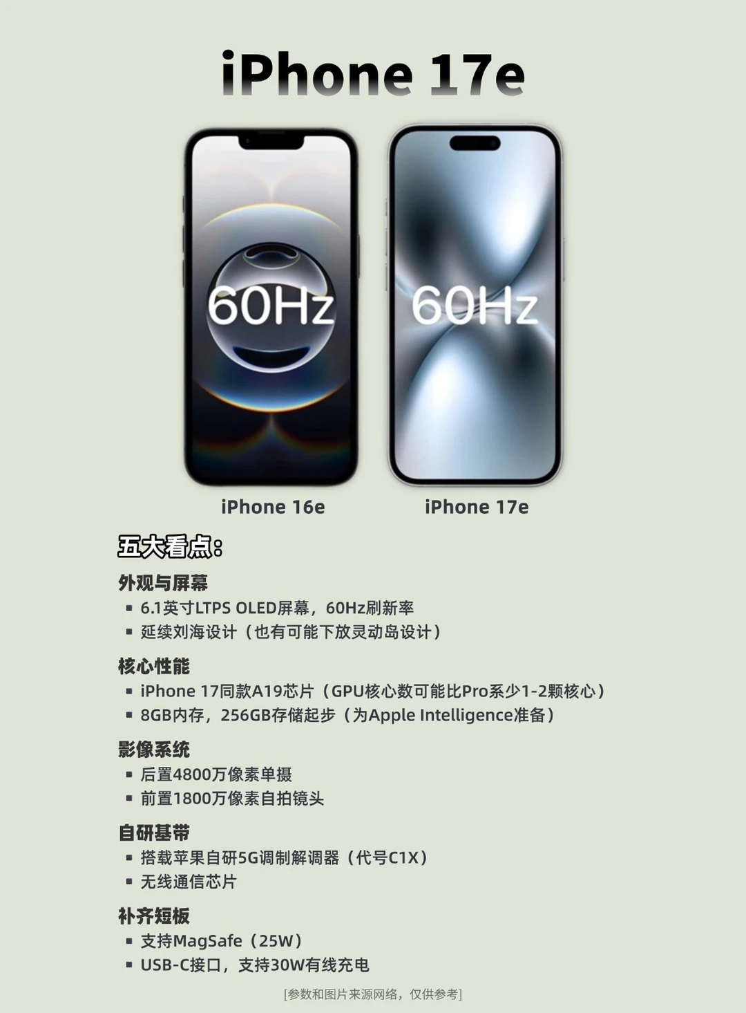 对于即将发布的iPhone 17e,想必各位已有耳闻,下面就总结该机的五大看点!