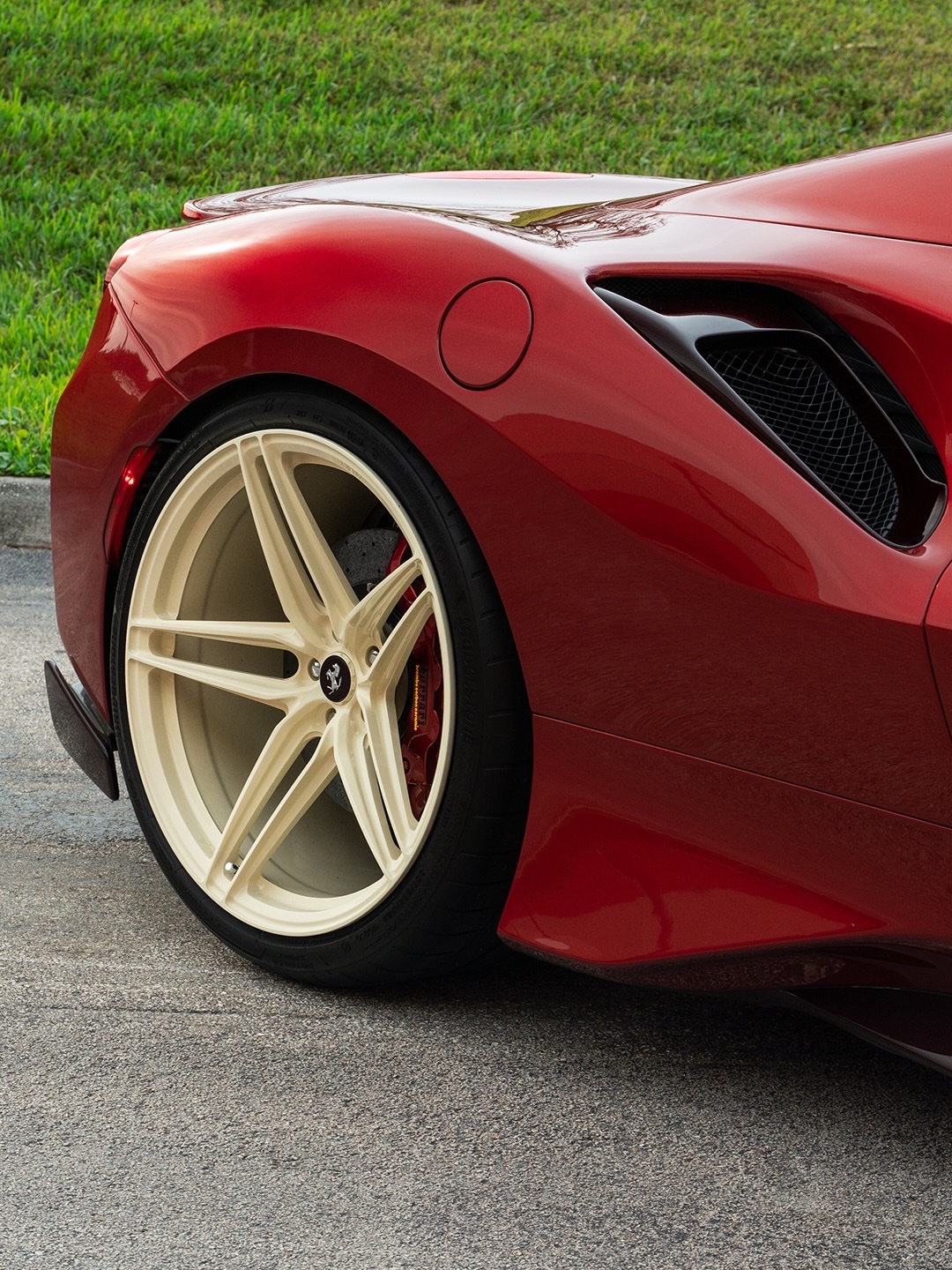 这是1/1的法拉利488 Pista Spider,新的模型XR-170,它采用了21x10/22x13的尺寸,并以与定制Sabia del Desierto相匹配的强调色完成。