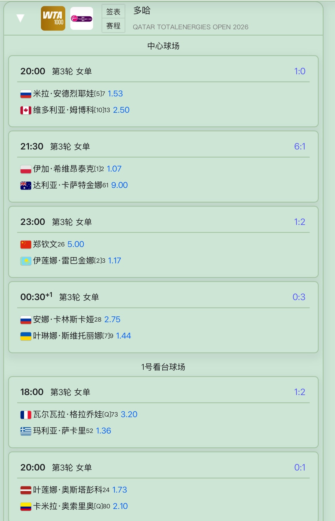 郑钦文vs莱巴金娜体育大赏网球talking大会多哈今日赛程安排,郑钦文再战莱