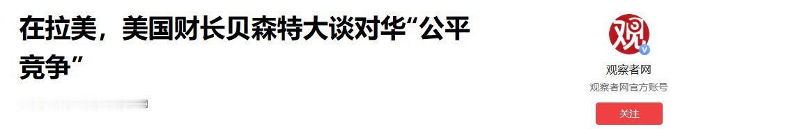 贝森特真不愧是华尔街出身的老手!这位美国财政部长满脸堆笑,对着镜头宣称美中关系正处于一个“相当舒适的位置”。 舒适?这听起来简直像是个笑话。就在几个月前,华盛顿还在准备施压,现在突然大转变,这背后隐藏着什么? 他说,两国关系可能会“非常富有成效”。贝森特知道外交辞令的精髓:当你想动手的时候,先把气氛搞得缓和一点。 他试图用这种语言,来抚平全球市场那根紧绷的神经。毕竟,如果两个巨人真的打起来,谁的经济都要遭殃,包括美国自己。 紧接着,那个熟悉的词又来了—“公平竞争”。贝森特明确把中国界定为“竞争对手”,但强调希望竞争是“公平的”。 这简直是美国政客的万能挡箭牌。在他们的逻辑里,只要美国赢了,那就是公平;只要美国在这个领域落后了,那就是你作弊。 所谓的“公平”,不过是要求你按照他们的规则行事,把你的产业补贴砍掉,把你的市场封锁,好让他们进来。 贝森特还玩弄了一个非常狡猾的概念游戏。他信誓旦旦地说,美国不寻求“脱钩”,只是需要“去风险”。 这真是一个天才般的修辞发明。“脱钩”听起来太暴力,太决绝;而“去风险”听起来多么理智,多么稳健。但别被这两个词骗了,剥去这层表面,两者的本质没有任何区别。 他甚至把这种算计上升到了政治高度。在谈到关键矿产和半导体时,他用了一个极具煽动性的词组:“重新夺回主权”。 听听,这已经不是在谈生意了,这是在谈主权!他把经济竞争直接描绘成了国家存亡的斗争。 贝森特还没忘了敲打中国的经济。他指着数据,抱怨中国万亿美元的贸易顺差“根本行不通”。他要求中国进行“再平衡”。 这又是典型的强盗逻辑:我自己消费无度,我自己印钞票买东西,结果反过来怪卖家卖得太多。 他想把美国自身经济失衡的脏水,全部泼到中国高效的制造业头上。 那么,为什么贝森特现在要摆出一副“舒适”的姿态?难道美国转性了?当然不是。这不过是一种短期的战术调整。 美国现在的日子也不好过,国内通货膨胀,债务高得吓人。他们现在需要调整,承受不起与中国彻底翻脸的代价,至少现在承受不起。 他们需要时间来调整供应链,需要时间来积蓄力量。这就是所谓的“缓和”。他们用口头上的“舒适”,换取战略上的“缓冲期”。 这就是著名的“小院高墙”策略的升级版。他们不再搞那种笨拙的“一刀切”,那是杀敌一千自损八百。 他们现在要搞精准打击。他们不介意买中国的廉价玩具和衣服,但绝不允许中国染指高端芯片和人工智能。 他们想把中国死死锁在产业链的底端。 这不仅仅是一场贸易战,这是一场关于发展权的生死之战。美国对华遏制的战略根基,连一毫米都没有移动过。 中国必须保持绝对的清醒。对于贝森特的话,听听就好,别当真。真正的应对之道,不在于听他们说了什么,而在于自己做了什么。 既然他们想卡脖子,那就做的比他们好。半导体也好,关键矿产也好,必须要有突破。只有手里有绝活,对方才会真正坐下来跟你谈“公平”。 更重要的是,他们越是想搞封闭的小圈子,中国就越要拥抱大世界。