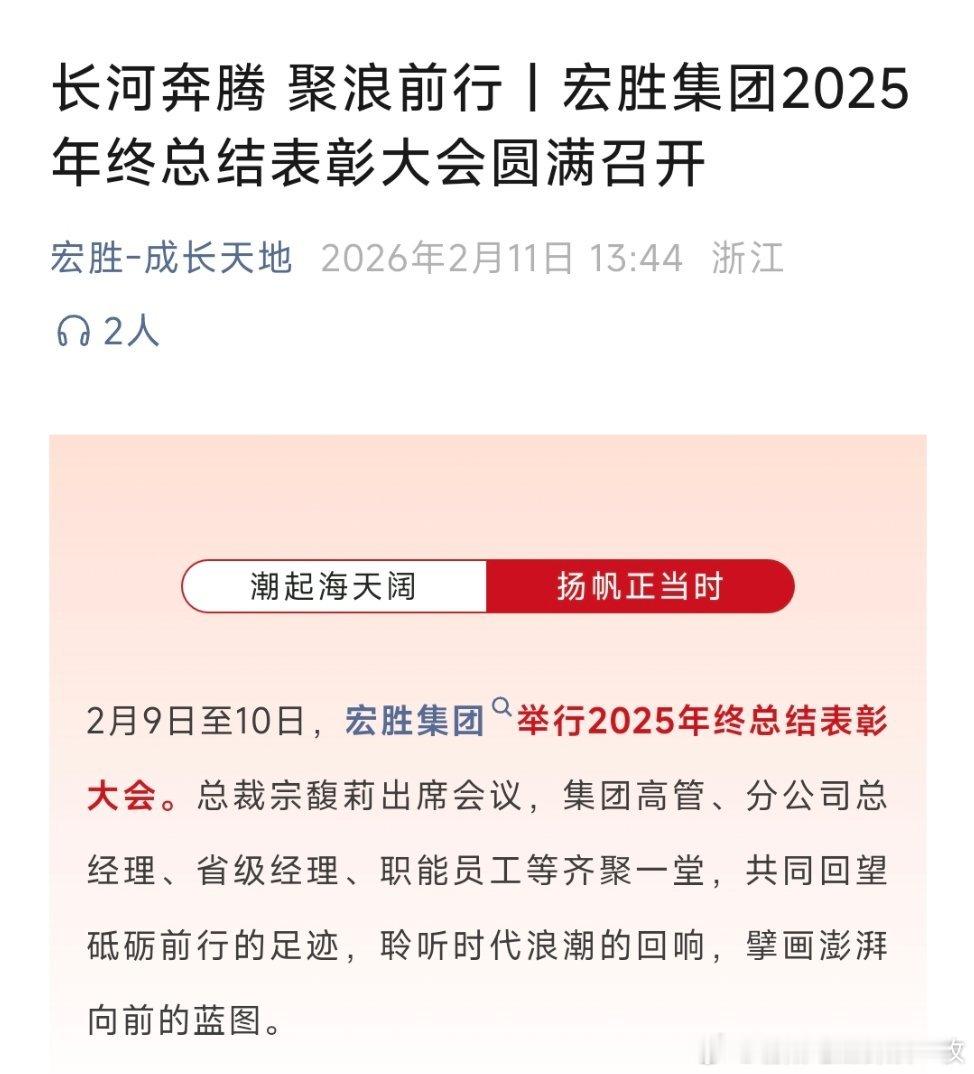 宏胜集团举行2025年终总结表彰大会,宗馥莉出席。