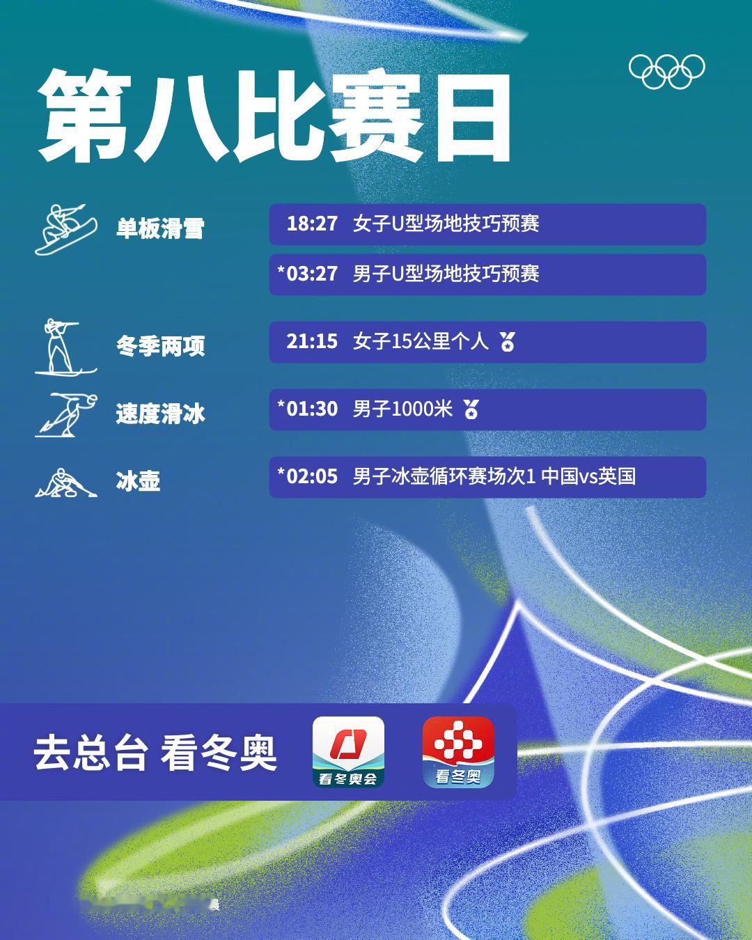 【中国男子冰壶队米兰冬奥首秀】男子冰壶中国vs英国 2月11日, 发布2026年米兰科尔蒂纳冬奥会第八比赛日赛程⬇️