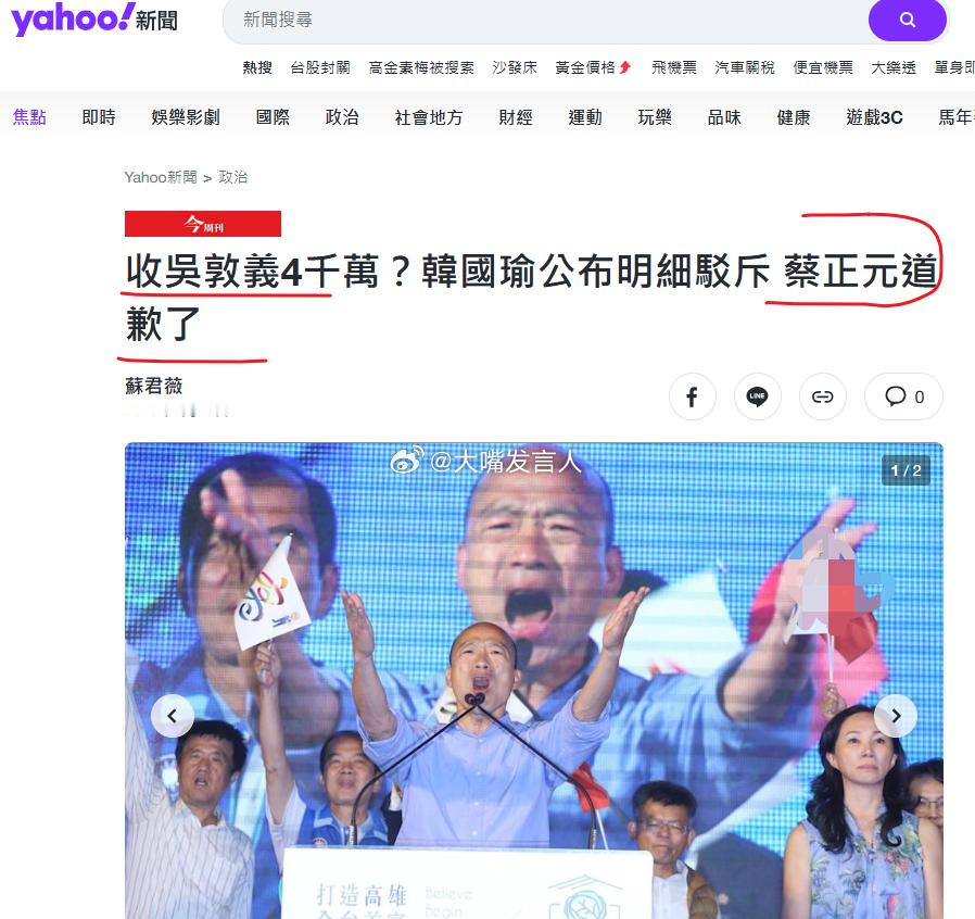 你看,蔡专家经常指导大陆,如何卖外汇储备、如何买黄金,你看得时间长了,你会发现,蔡专家为什么从不或很少指导岛内的金管会等机构呢,他更不敢持续批评岛内的金融监管机构,你说这是为什么?我感觉,因为岛内相关机构可不会惯着他,他的任何指导、批评,岛内相关机构不爽了,都会直接回应他、甚至回嘴批评他,而大陆一般不会搭理他,所以他批评大陆时可以满嘴信马由缰比如他以前说过韩国瑜,说韩在2019时拿过吴敦义筹款4000万,结果韩公布明细要求蔡拿证据,蔡随后只得道歉(图2),更别说还有中山泰秀传话之说结果被人家发律师函热点观点 ,望台湾方面取消两岸航空不合理限制