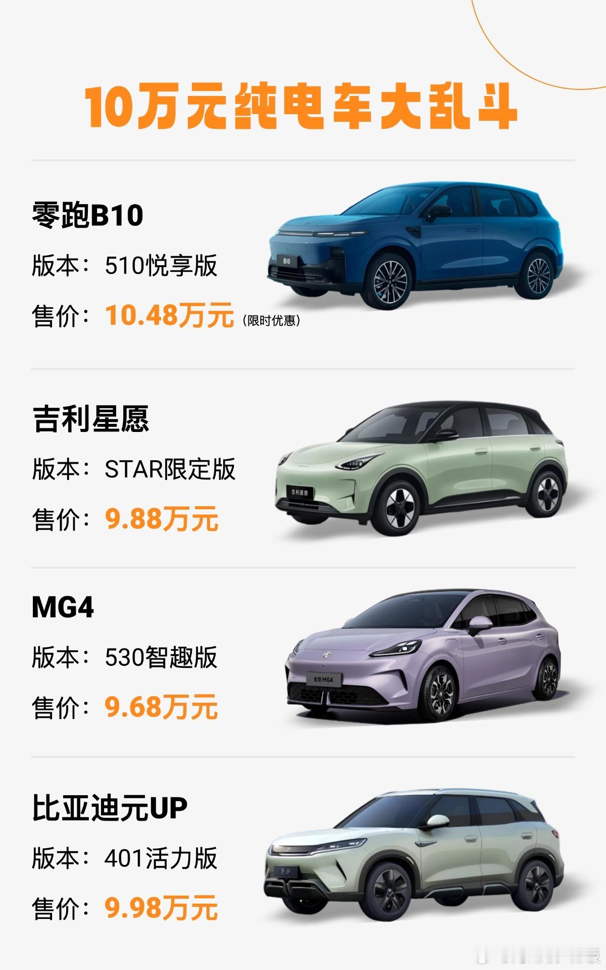 来个10万元纯电车大乱斗