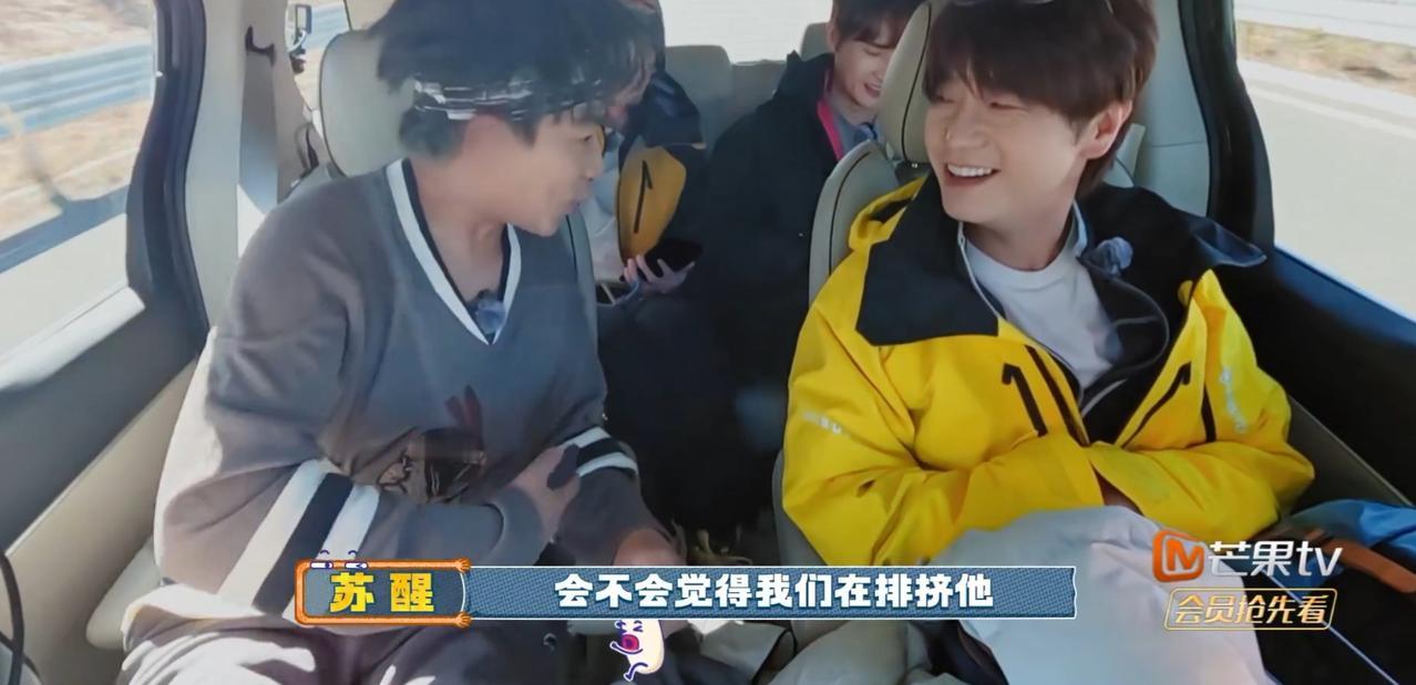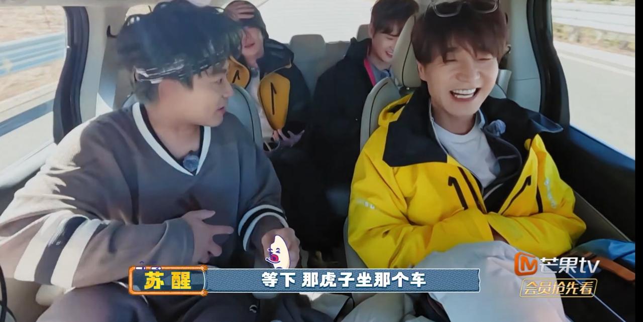 苏醒他们乘车前往虎跳峡, 王铮亮就这样随口一说, 苏醒突然大喊 这个事情不知道如何给陆虎解释清楚。 苏醒,王铮亮,王栎鑫,张远同一辆车, 而陆虎一个人和弟弟们一辆车。 王铮亮突然发现他们披哥的x-team 刚好是同乘一辆车, 就此合体了。 苏醒突然意识到 陆虎会不会误会苏醒他们特意排挤他, 故意让陆虎跟弟弟们一起, 这样他们x-team就可以合体了。 镜头一转, 陆虎和弟弟们聊得热火朝天, 讨论如何为弟弟们打歌, 想着如何拍摄打歌视频最合适。 那一个如鱼得水呀, 哪里还顾得上苏醒他们, 这样看来, 是苏醒他们想多了。 苏醒他们担心陆虎误会自己受排挤, 但是换一角度看, 陆虎就不担心自己跟弟弟们一块 因此背上抛弃兄弟们的骂名吗? 哎呀, 他们都想多了, 这样的分车就是一个随意之举, 不要想多了。 但是陆虎一开始就跟弟弟们相处比较好, 处处照顾弟弟们。 弟弟们没有地方住,陆虎让弟弟住自己的房间来, 弟弟们刚起床,陆虎给他们买咖啡, 弟弟们发新歌,陆虎抓紧机会给他们打歌。 就这样看, 陆虎就像一个太阳那样温暖着弟弟们。 你说 像陆虎这样的一个人会去误会苏醒他们排挤他吗?