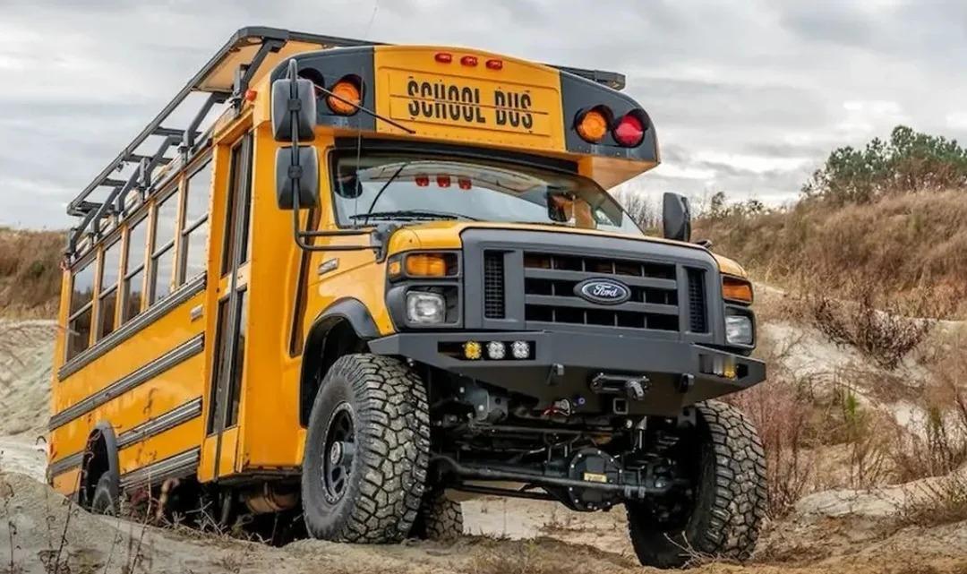 好车分享 Ford E450车头,虽然E的厢型车停产10年了,但E级车头还一直在产,至于四驱,原厂从没有过,全都是后改的,毕竟这款车几十年了,所以改装件非常成熟,引擎变速箱一直在更新,但底盘没变过