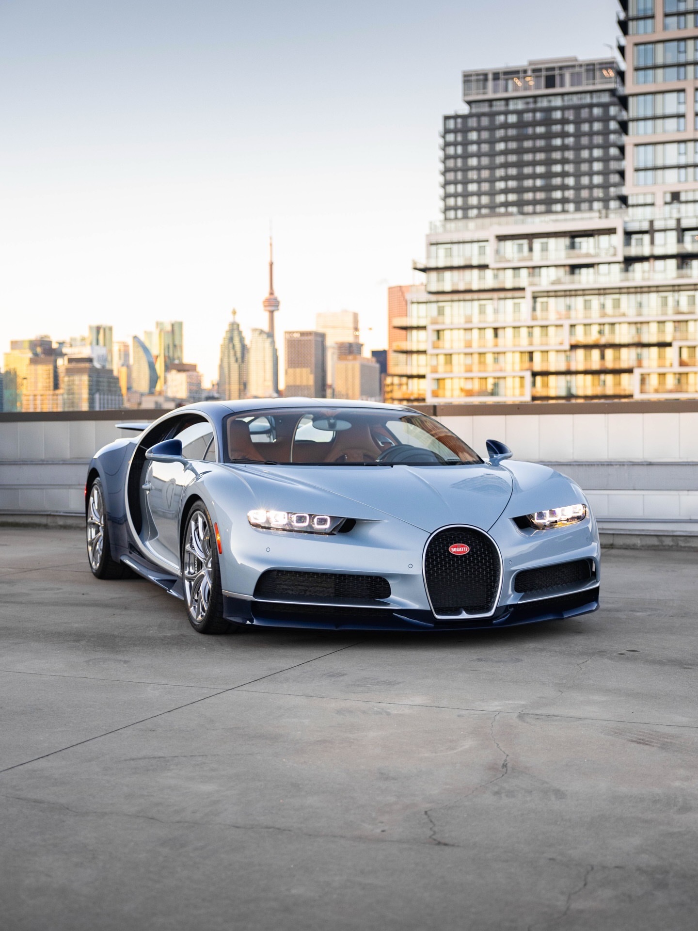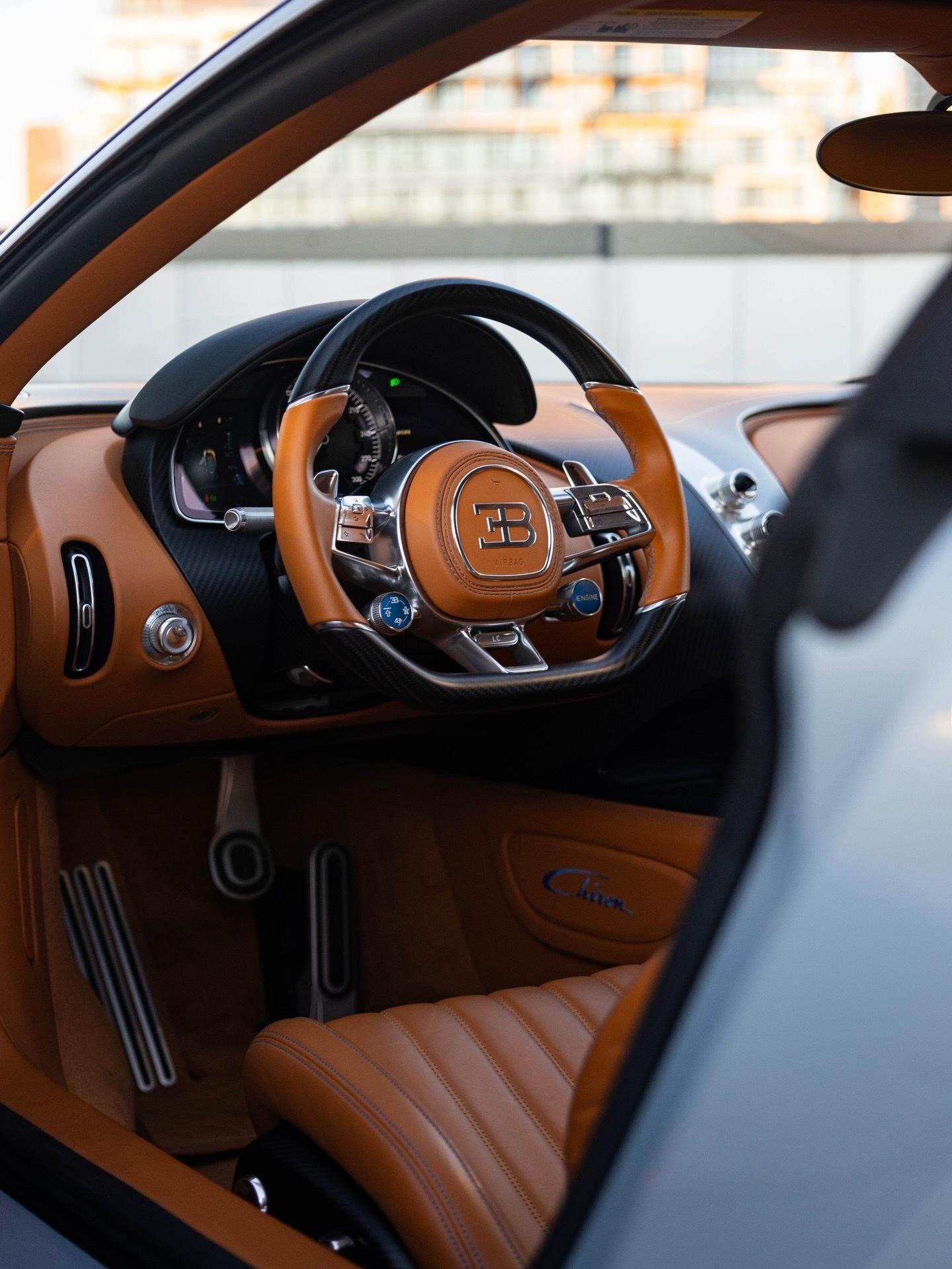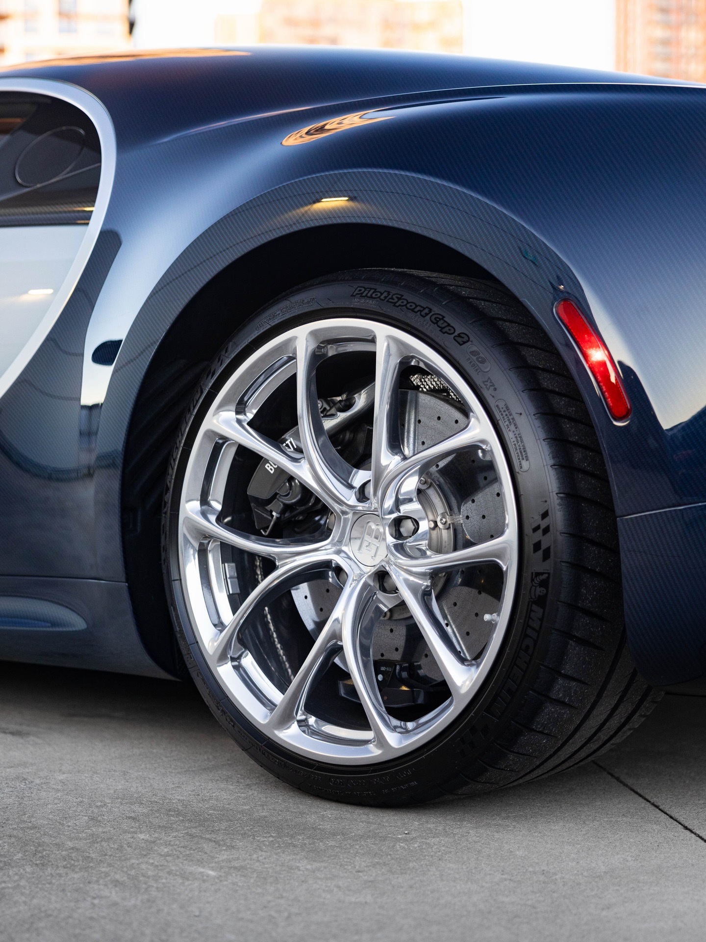 2017年的Bugatti Chiron这款1500马力的8.0升四涡轮增压W16引擎,外观为皇家碳蓝和液体银色,内饰豪华至极。