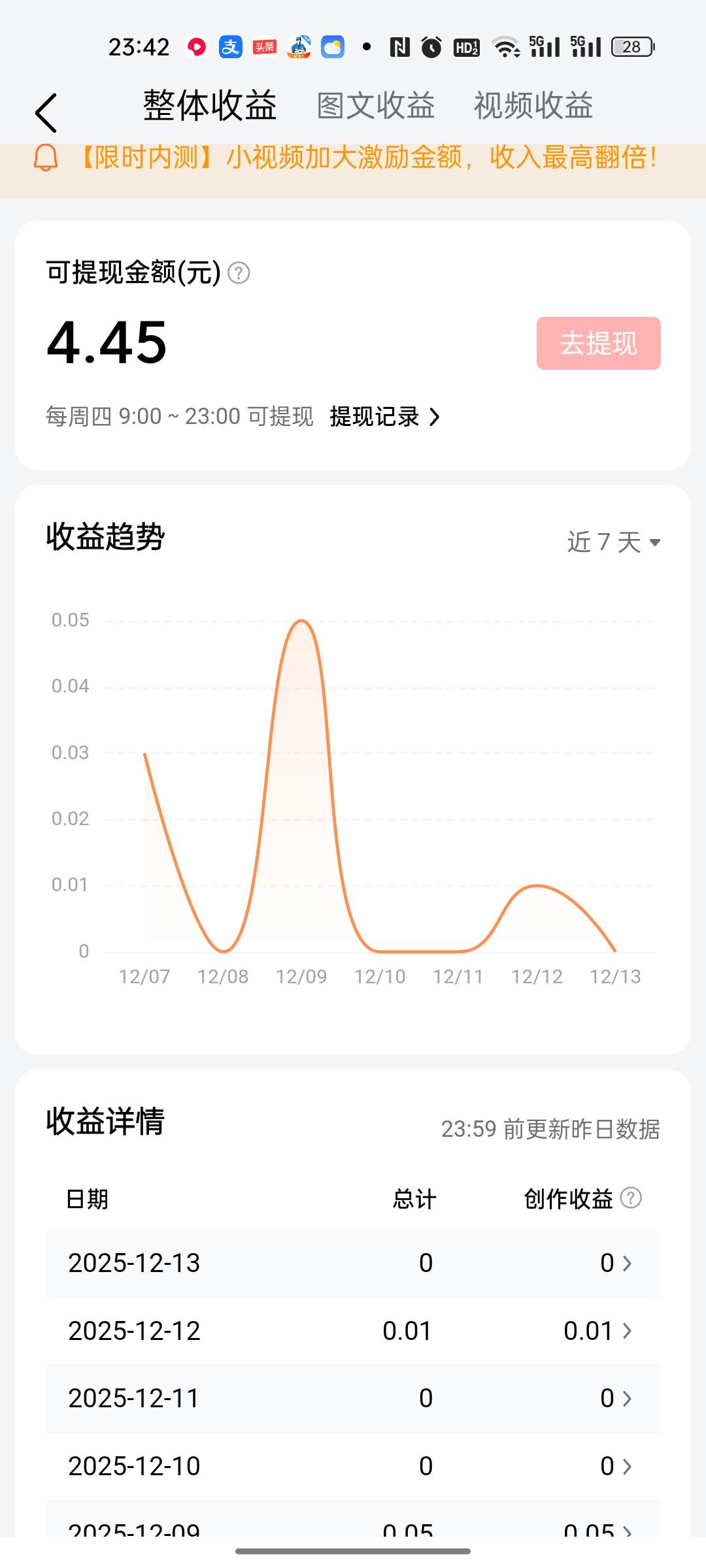 做头条5年了,刚开始每天能赚50块钱左右,现在每天都是0.01元,流量非常非常低(最低值),想问问大家这是什么原因?为什么我流量那么低,查权重是1.0最低,你们说这个号还有救吗?你们说删掉现有全部作品重新搞会不会好点?这次真的想重新认真做头条了,不钓鱼了,再也不钓鱼了,要是站不起来,我只能又去天天钓鱼了。 .