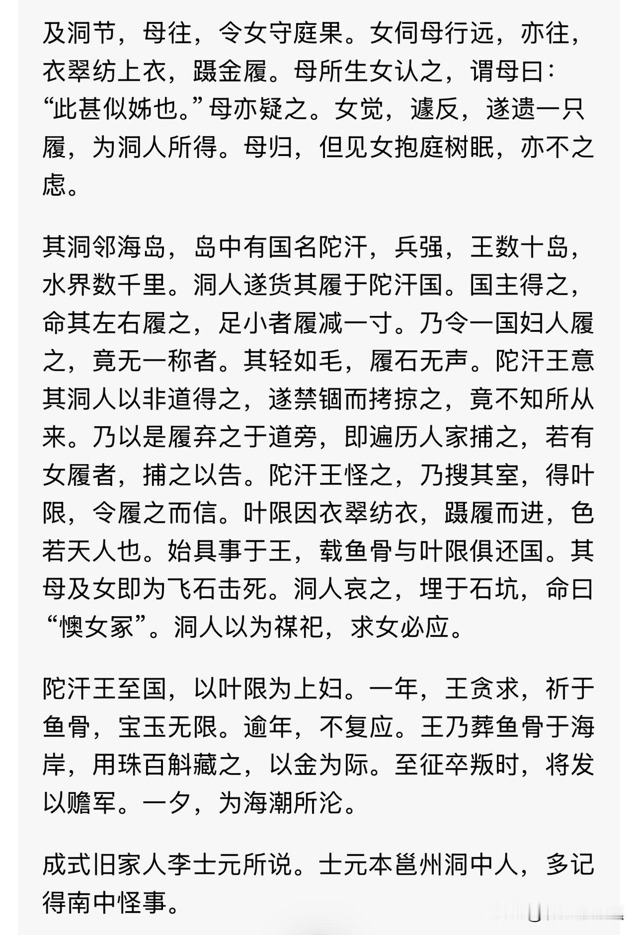 文化被抄袭,我们要有自信(四) 2019年,中国儿童剧院上演了一部根话剧《叶限》,这部作品是根据我国唐代作家段成式的作品改编的,中国新闻网曾用“中国灰姑娘”这个标题进行过报道。 要知道,段成式这部《叶限》是成书于公元860左右,比德国格林兄弟的《灰姑娘与水晶鞋》要早八百年。一部西方的《叶限》竟然被我们自己称为东方的《灰姑娘》,只能说是自信心在作祟。 格林兄弟比安徒生要脸,人家没说自己是原创,人家说是收集的各种民间故事及神话传说,经过整理后出版的《格林童话》。 ——————————