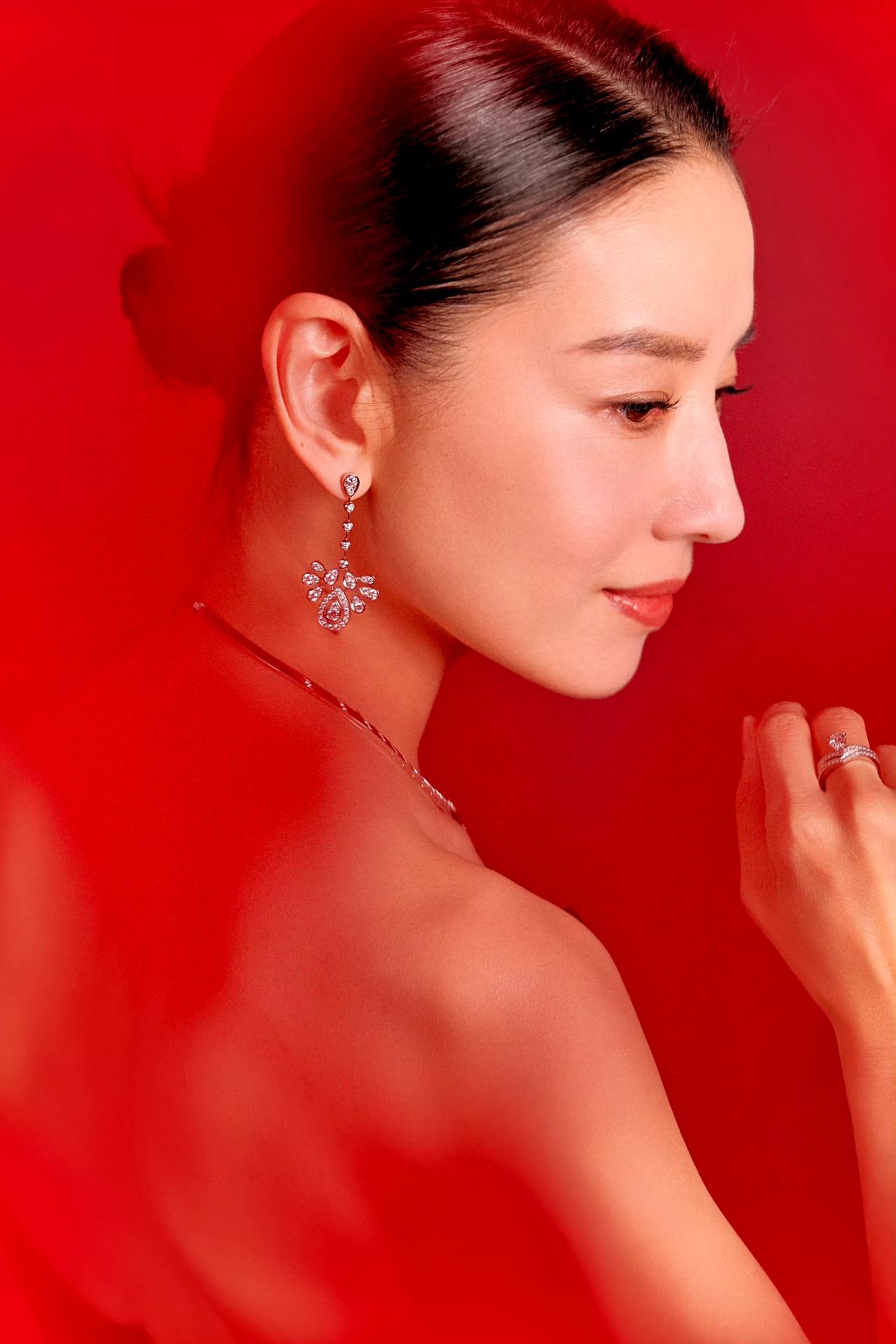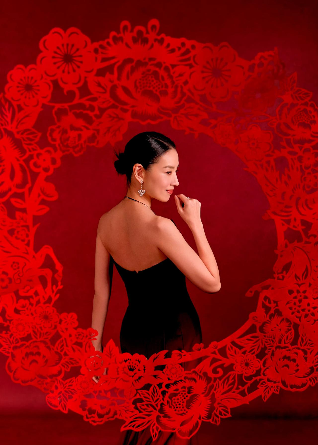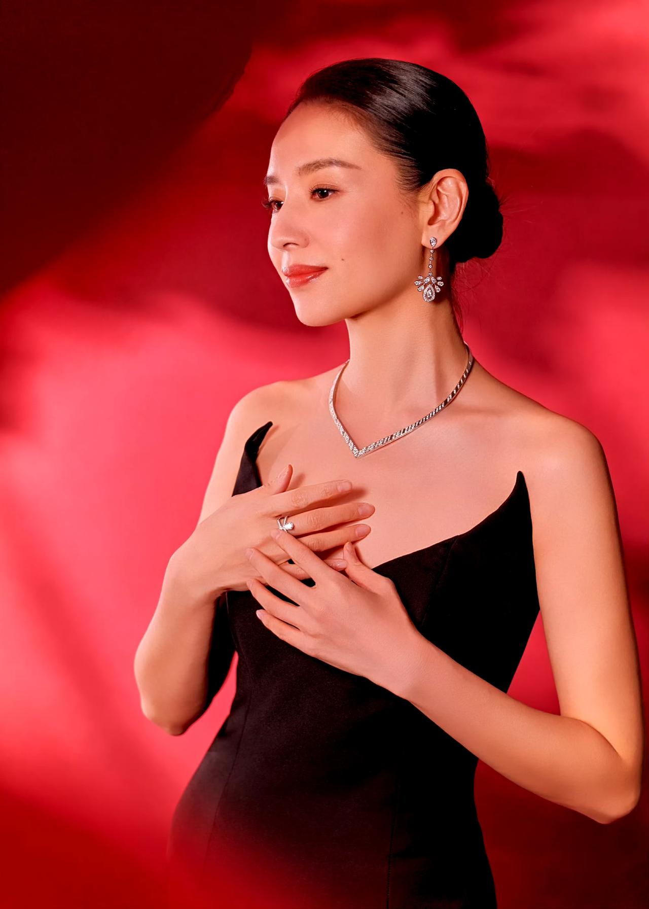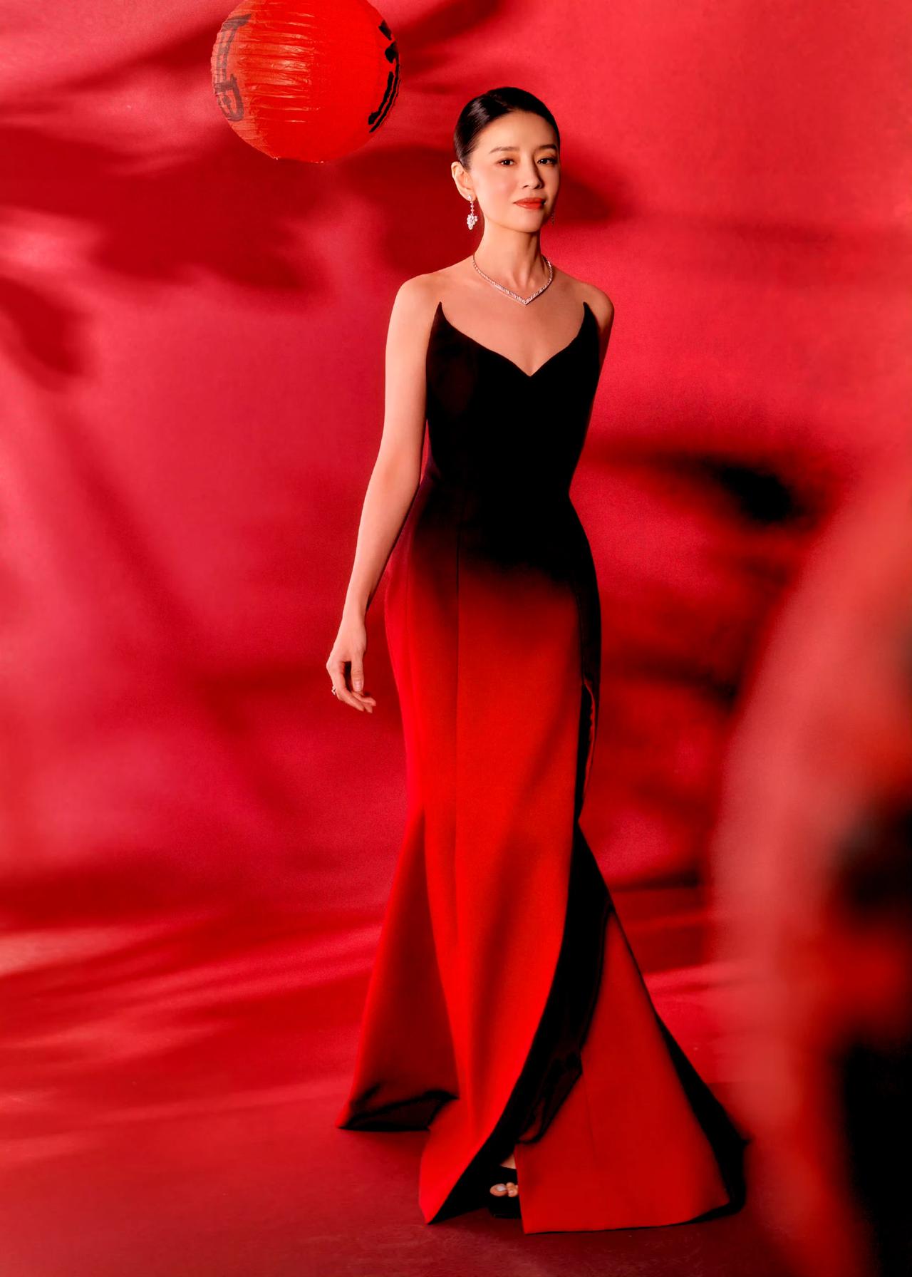 董洁写真壁纸~红黑渐变礼裙勾勒曼妙身姿,光影下的她简直在发光!