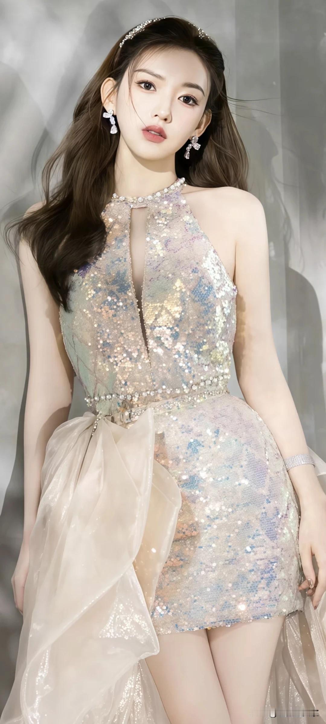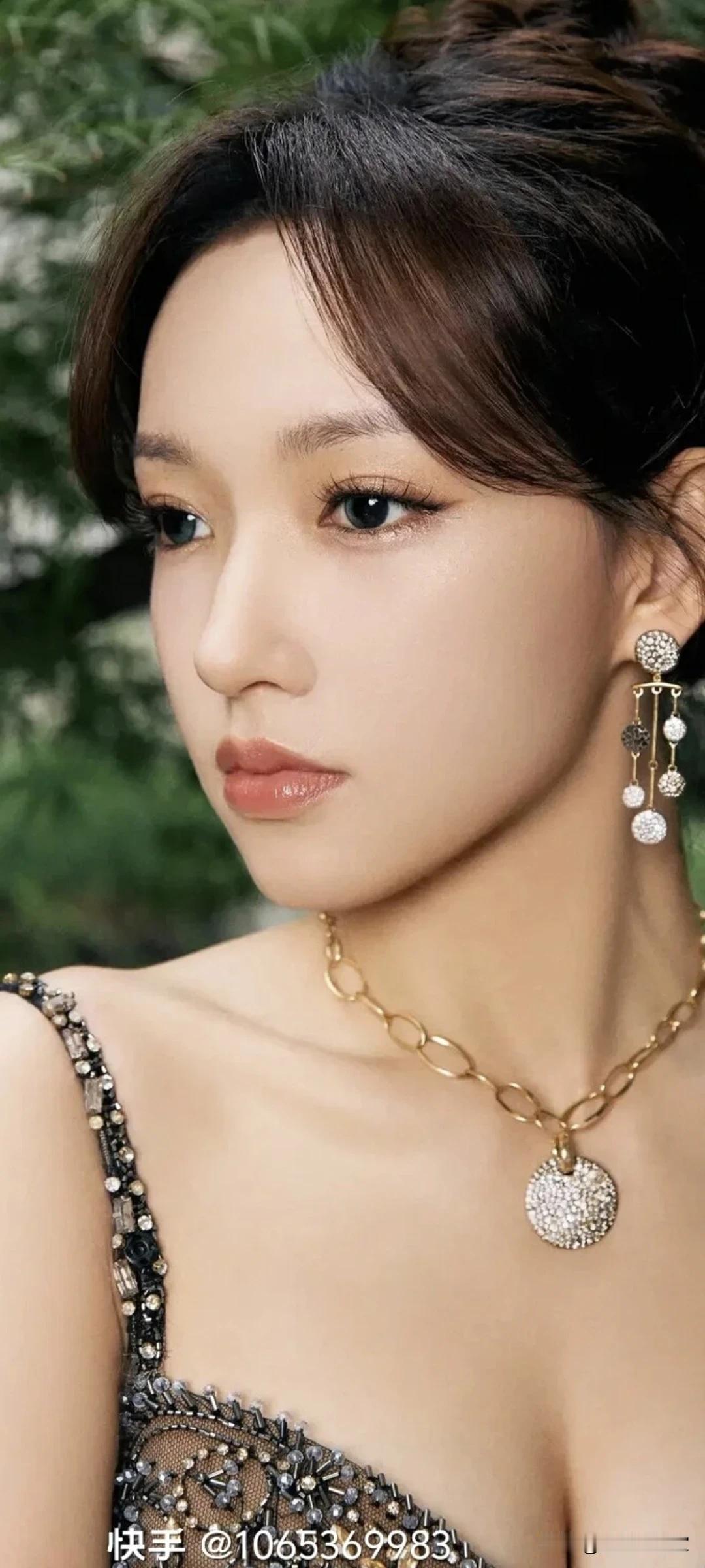 程潇写真壁纸~被这组图美到失语!裸色礼服衬得她又纯又欲,氛围感封神