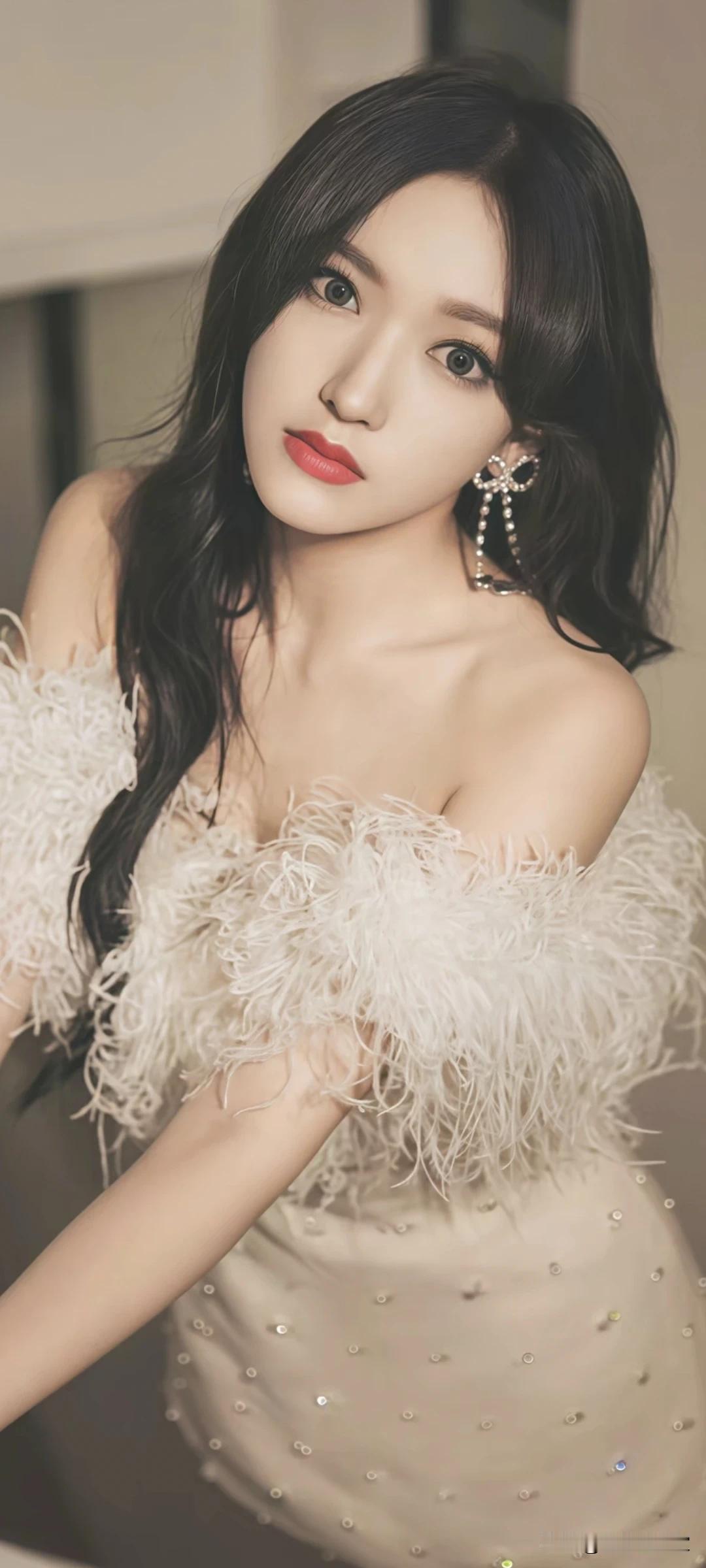 王楚然写真壁纸~粉色晕染吊带+毛绒半裙,在柔光里美成画报女主!