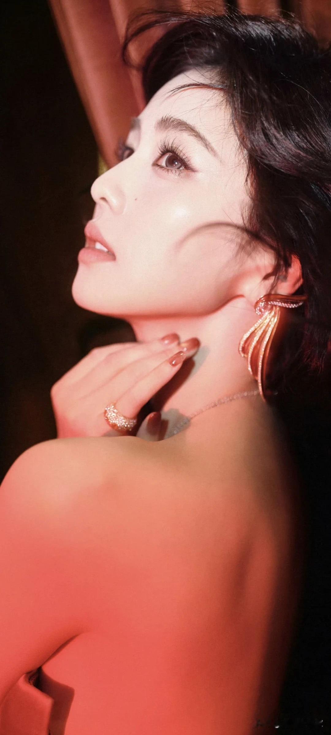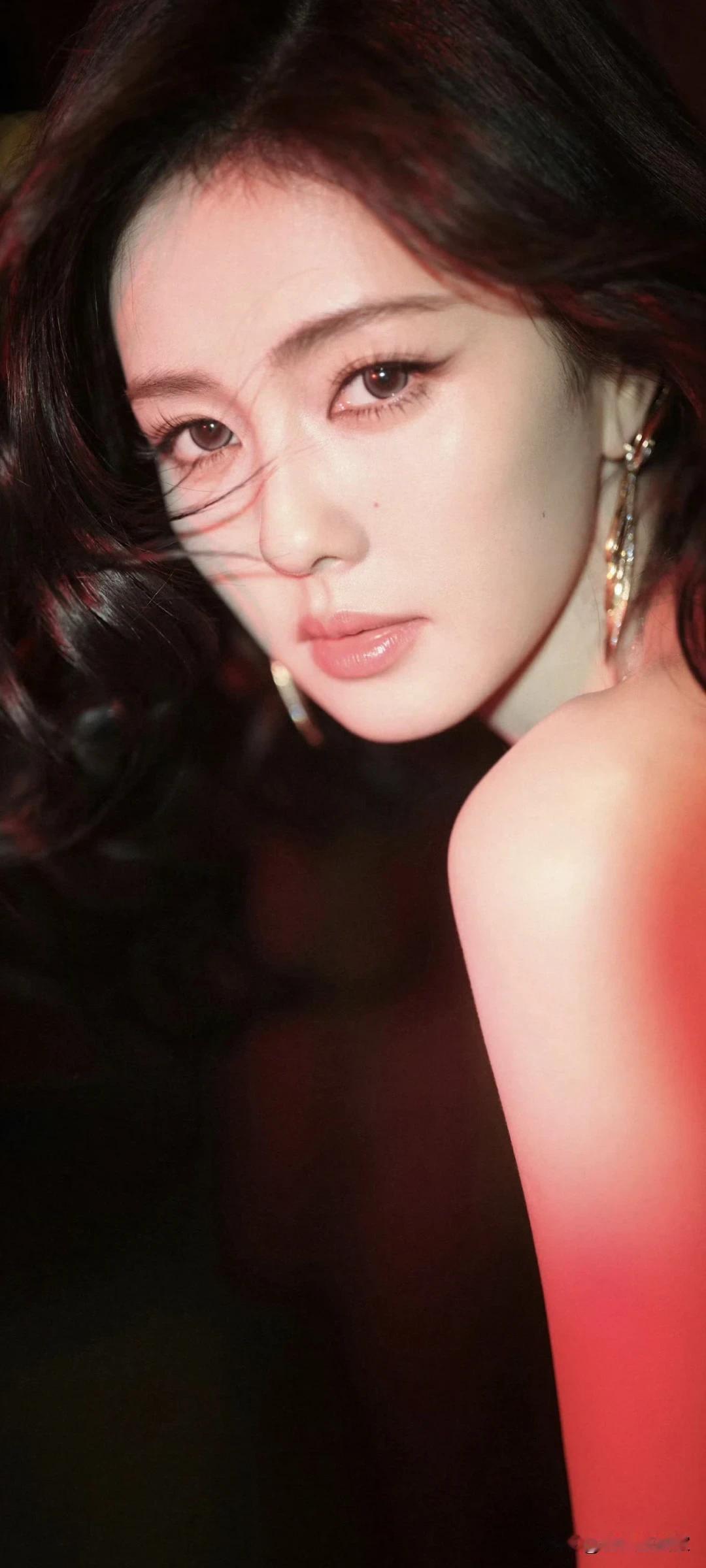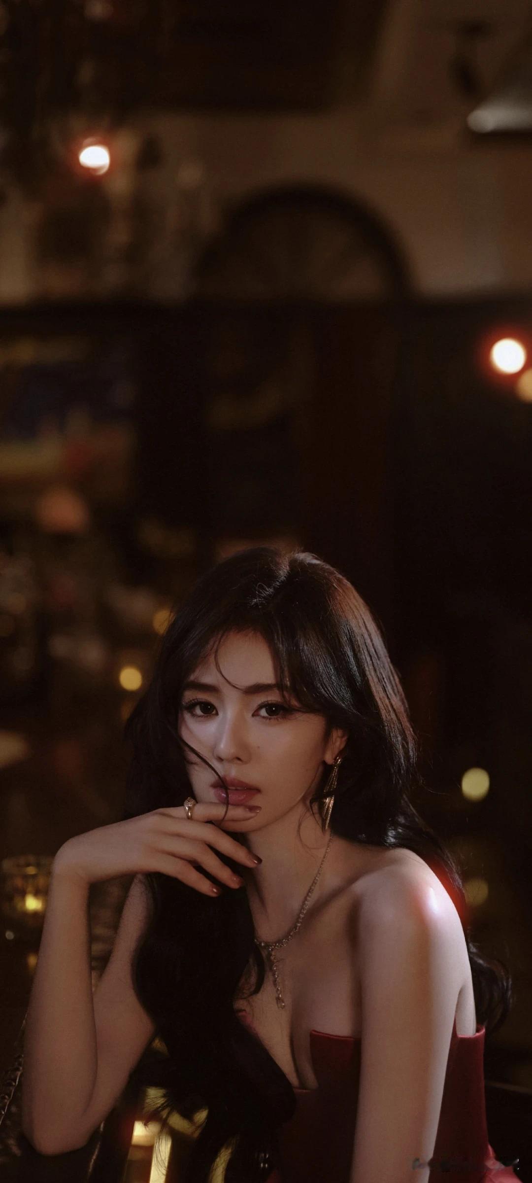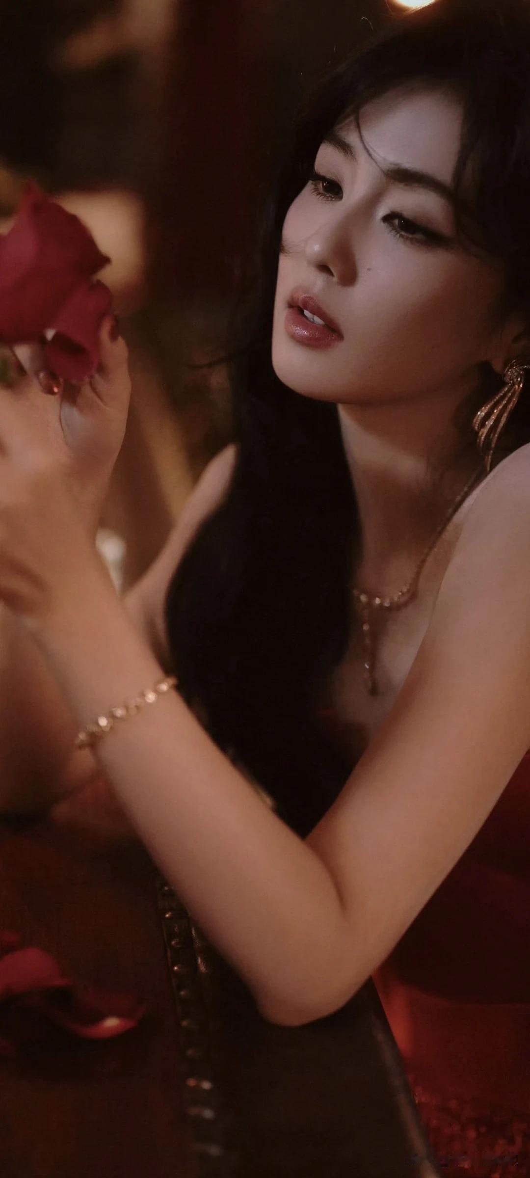 白鹿写真壁纸~礼裙开衩+波浪卷,优雅又性感!