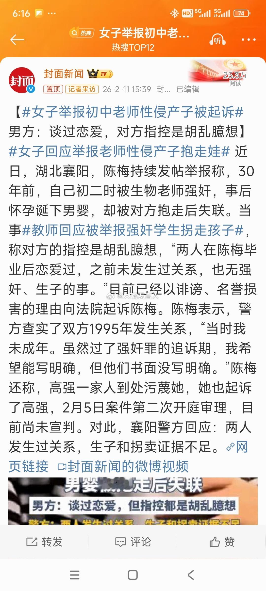 女子举报初中老师性侵产子被起诉 什么?这到底是强奸案件?还是属于同意可以撤销?30年后还仍然能撤销?