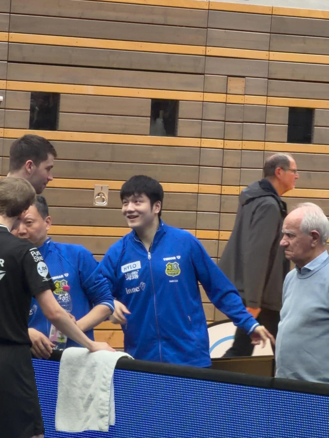 樊振东和小弗队长又同框了,他们俩真的好有爱,是我们喜欢的样子,美好舒服! 后来又安排达科走了一趟,去拿白毛巾了,开赛前一刻才拿到手,哈哈哈,他们几个的关系让人捉摸不透,笑料百出,他们之间的趣事很多,让人很开心,就是倍儿爽!