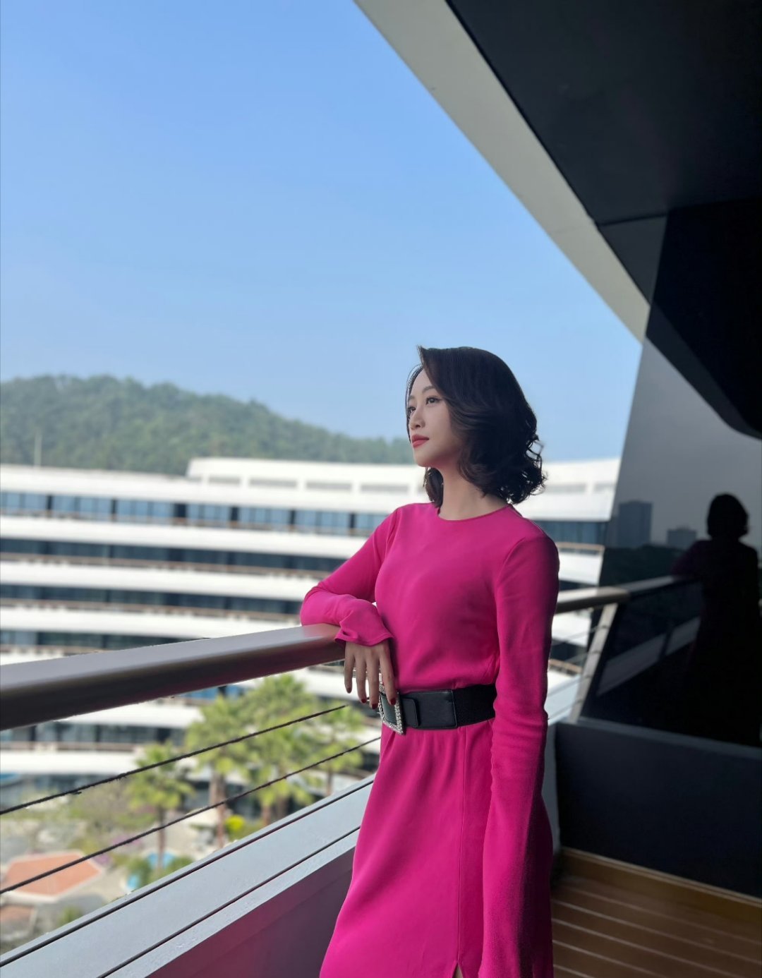 张天爱跟素人合影,胯真的好宽,大宅院似的