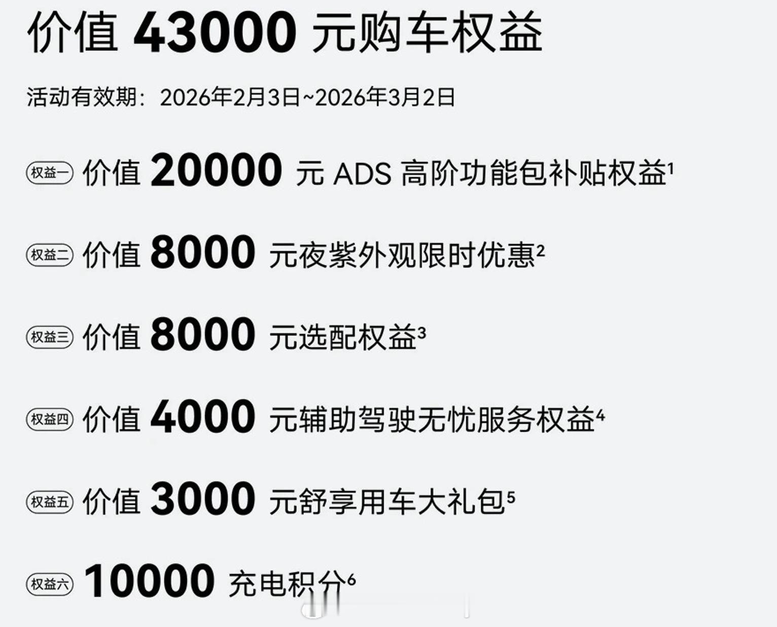 近期看下定问界M8的不少一看最近多了4.3w的一个购车权益瞅了下其实M8刚需的配置其实都可以包含了像是ADS的高阶辅助驾驶最新的夜紫车漆辅助驾驶无忧服务权益等等这么看问界M8从SKU看增程和纯电就选续航到位的之后从购车权益里选那些刚需配置就行了怪不得从最近销量来看40w级确实成绩可以成交均价第一目前是有点东西~~~问界M8新能源大牛说