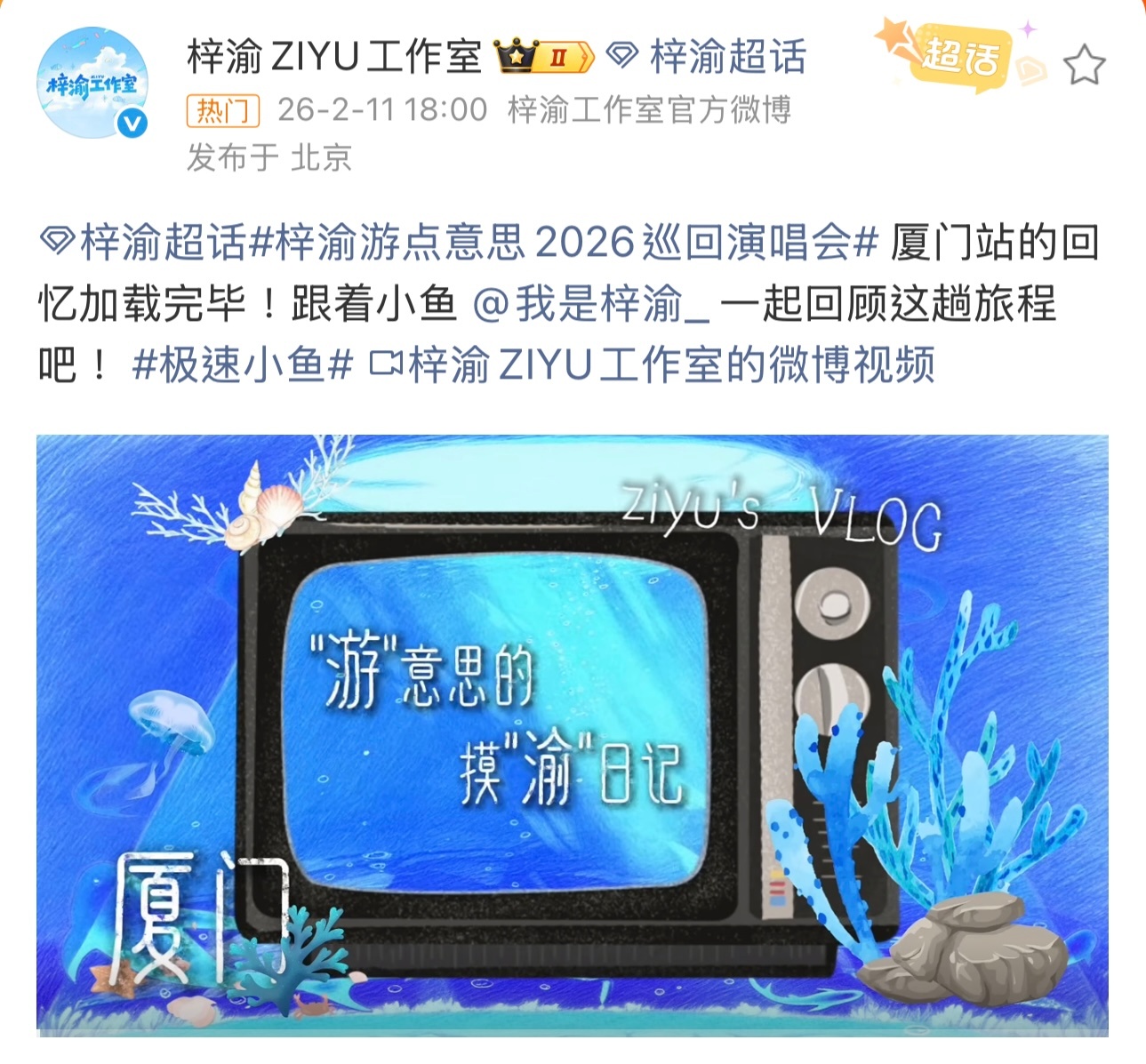 梓渝工作室发厦门vlog梓渝工作室发了厦门vlog,终于更新了,好可爱的小梓渝啊,这vlog频率,粉丝们都吃饱了吧!好宠粉!