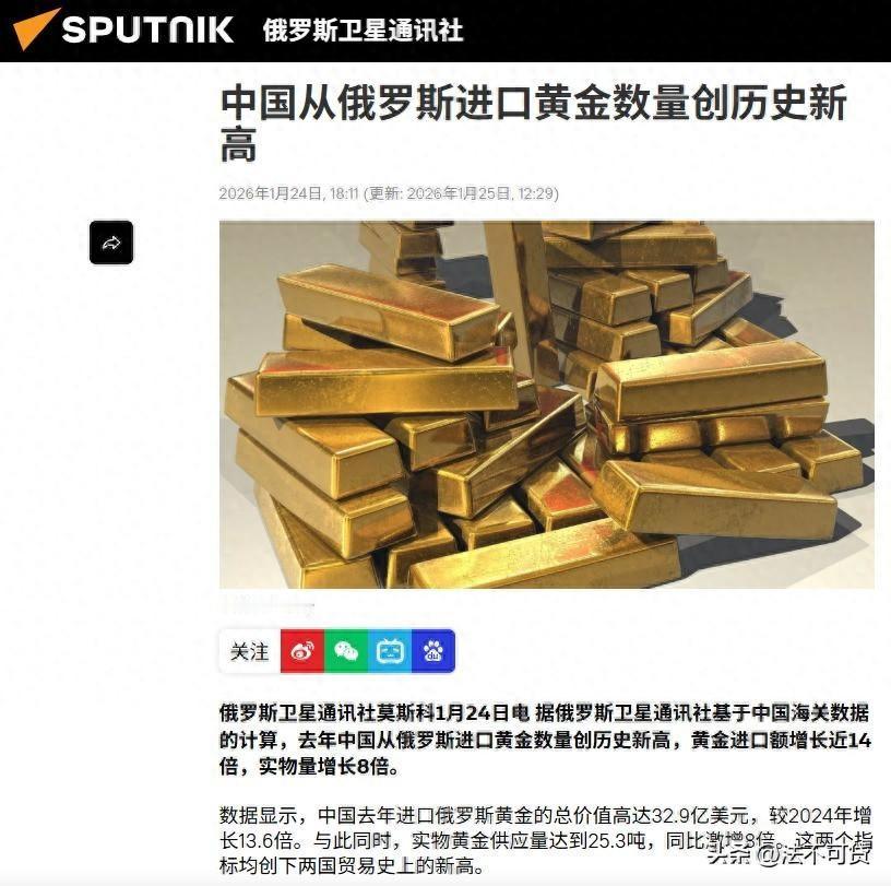 2026年初,海关数据显示中国从俄罗斯进口的黄金暴涨800%,达25.3吨,背后隐藏着让西方焦虑的事实——俄罗斯成功绕过了西方制裁。2022年,西方冻结了俄罗斯3000亿美元外汇储备,许多人认为俄罗斯经济会崩溃,但它反而找到了新出路。之前的外汇储备其实只是别人系统里的数据,关键时刻可以被冻结。为了避免这一风险,俄罗斯自2014年起大量购买黄金,储备在2022年翻了三倍多,因为黄金不受他国控制,是最可靠的“保险”。 那么,为什么这些黄金运往中国?原因不仅仅是为了储藏。俄罗斯急需西方禁运的产品,如高端芯片、精密机床和医疗设备,而它的石油、天然气赚到的美元随时可能被冻结,根本无法使用。于是,俄罗斯将黄金兑换成人民币,向中国购买急需物资。整个交易绕过了西方金融体系,既不通过SWIFT,也不用美元中转,西方找不到切入点。更令美国担忧的是,俄罗斯的模式被其他国家纷纷效仿。2025年,全球央行大举增持黄金,波兰、土耳其、哈萨克斯坦等国纷纷购买,甚至德国、意大利也悄悄把黄金从纽约运回家。到2025年底,全球央行黄金储备超过3.92万亿美元,首次超过美债。这表明黄金正在取代美债,成为各国的安全避风港。