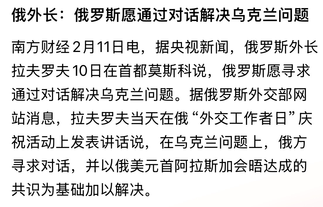 俄外长:俄罗斯愿通过对话解决乌克兰问题… 俄乌战争