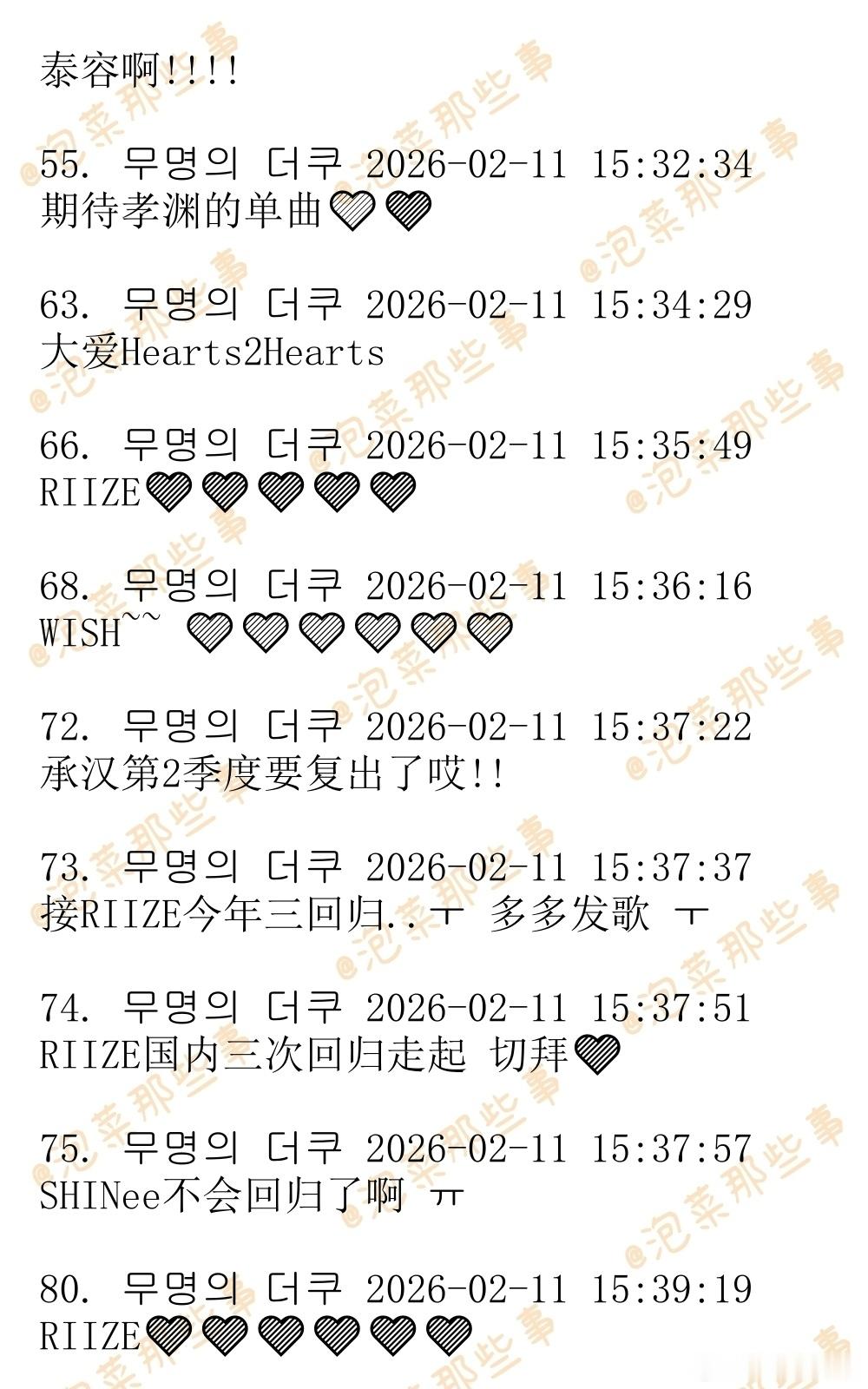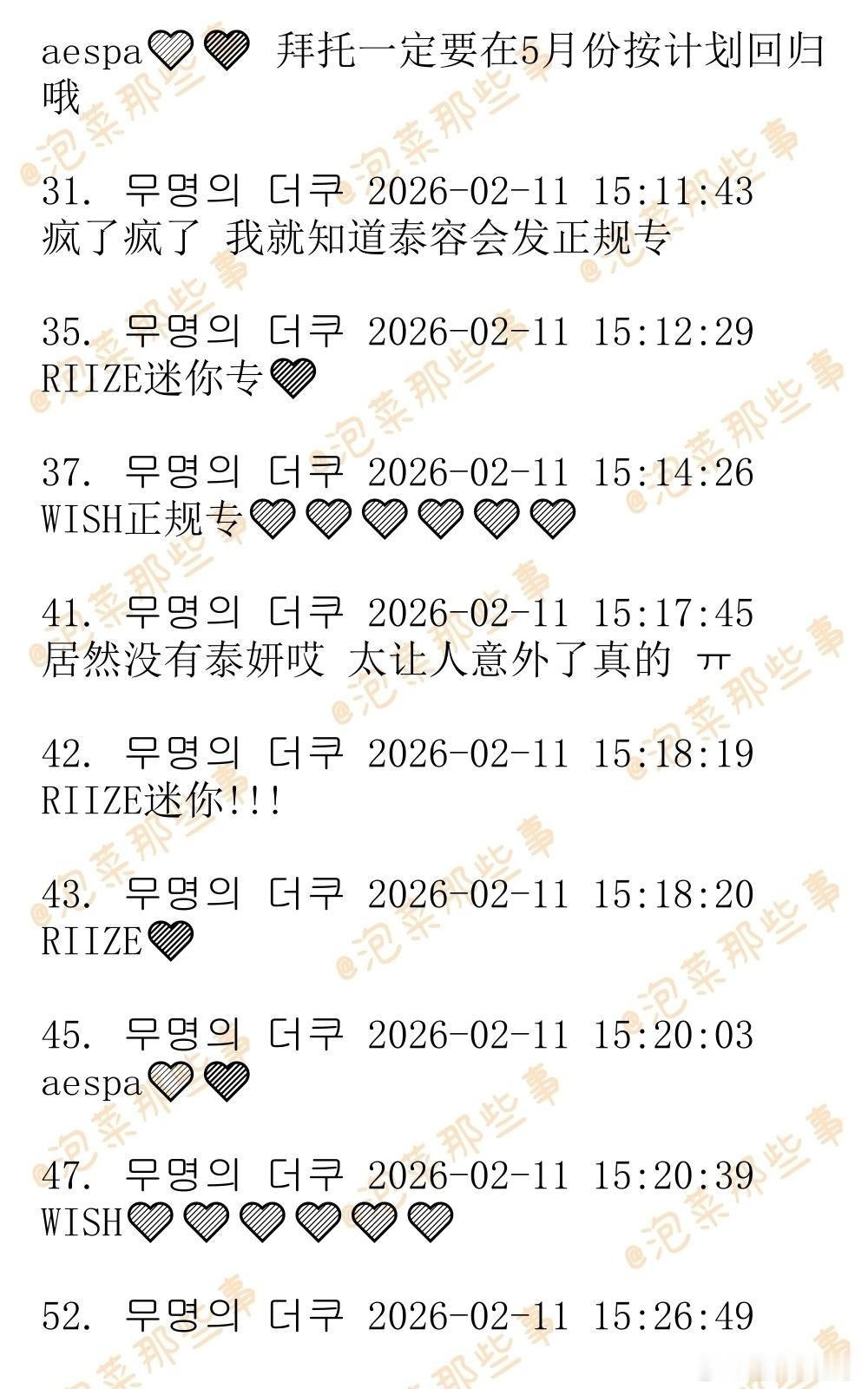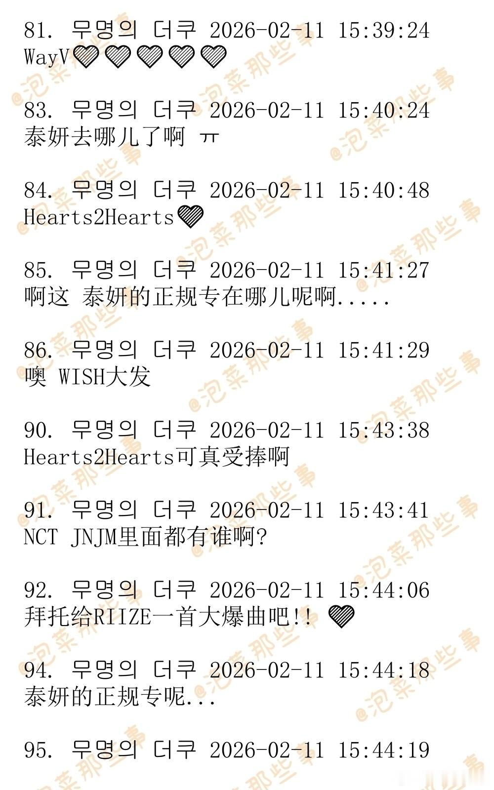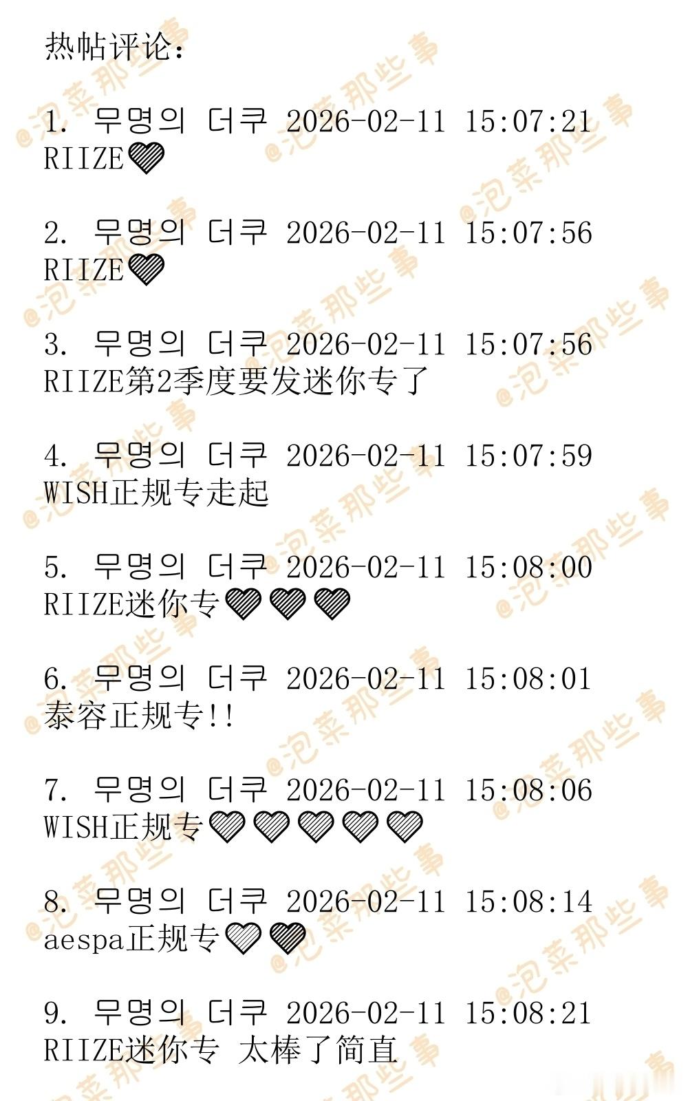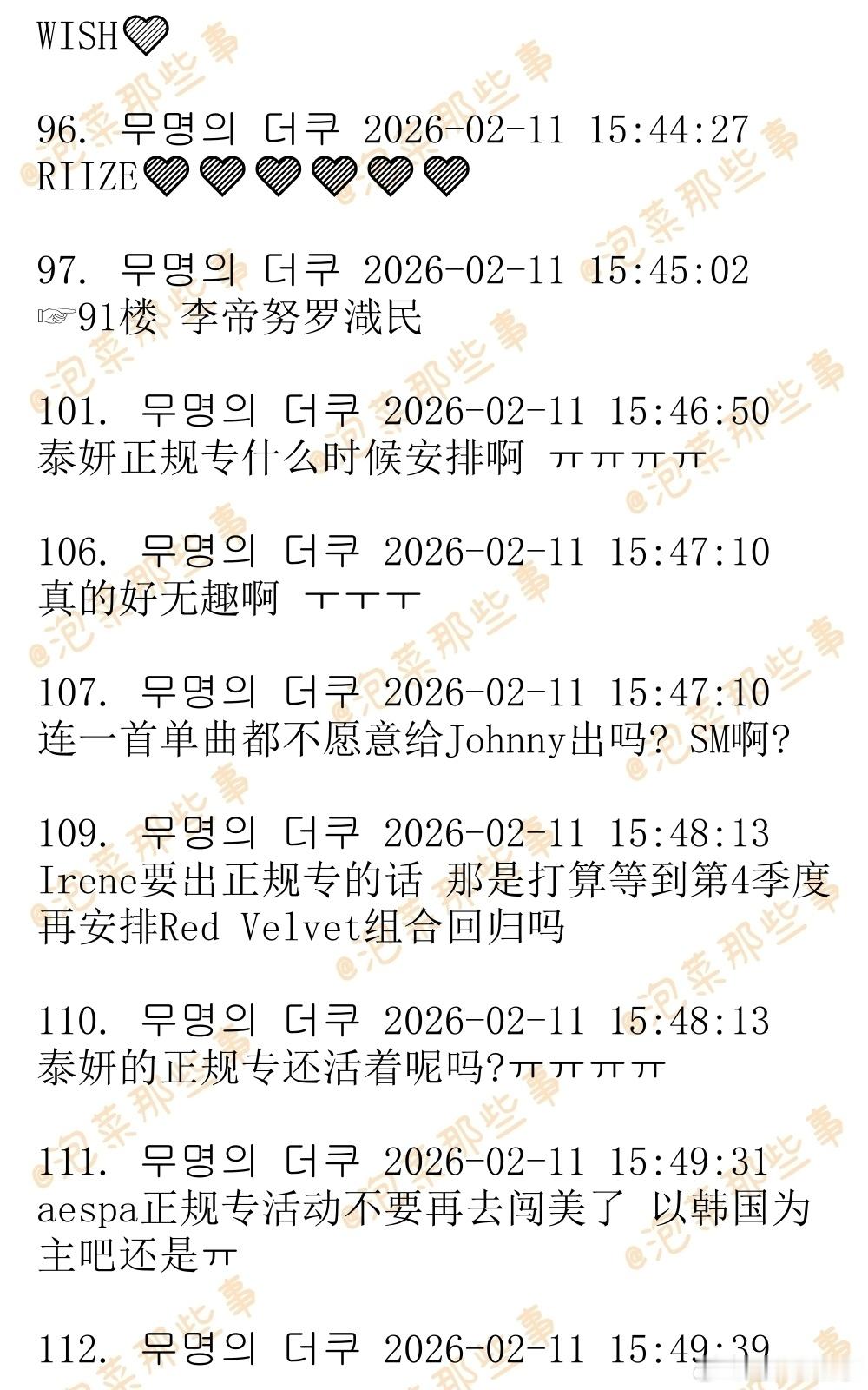 🔥韩网热帖评论翻译🔥SM2026第二季度回归艺人计划:aespa/李泰容/WISH/艺声/正规专 WayV/RIIZE/Hearts2Hearts/洪承汉迷你专 厉旭单曲hg网民:金泰妍的正规专在哪儿呢啊?cr.theqoo