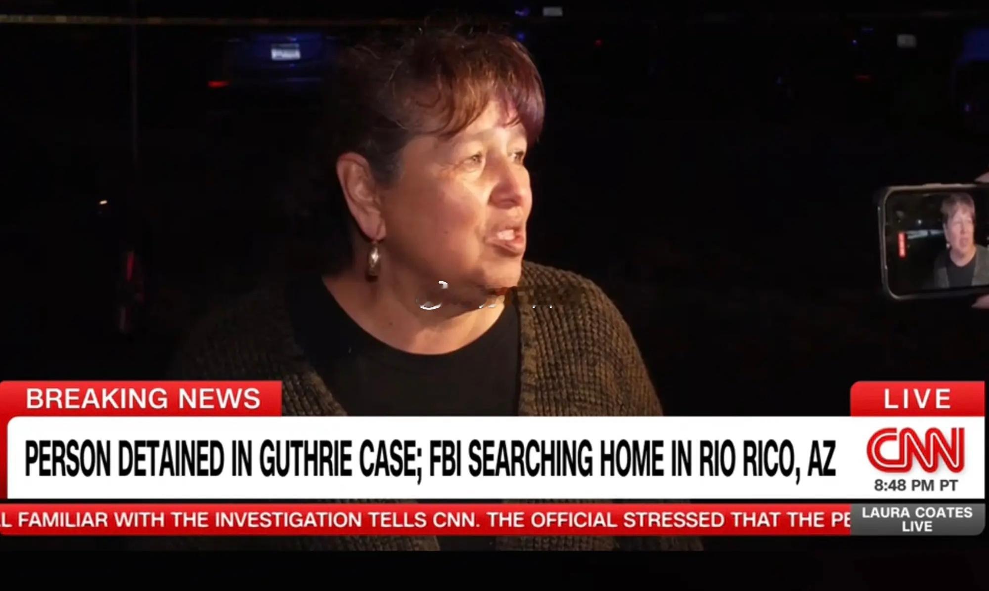 他回到家门口接受了大批媒体采访(图五),大概就是他曾经给Nancy Guthrie的家送过包裹,然后就被怀疑上了?现在放他是因为发现真的抓错了?