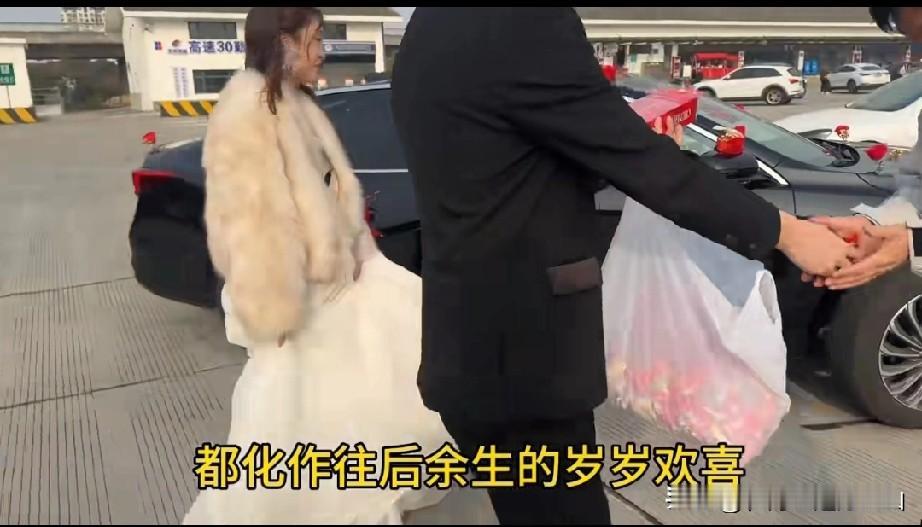 属于中国人的专属浪漫,高速路上一辆孤独的婚车拉着横幅“你怎么知道我把李婷娶到了”,李婷原本只是没人祝福的孤独远嫁,没有娘家人的婚车护送,没有豪华迎亲队,结果在高速上被一群陌生车辆送嫁。 2月10日,上海段高速路上,一辆婚车在高速路上特别显眼,因为婚车很孤独,没有一辆送亲车队,只有孤孤单单的一辆车。这种情况推测有两种原因,要么是双方家庭条件限制,实在没有钱请豪华车队,要么是因为这个叫李婷的姑娘远嫁,娘家人不乐意,所以才没有送亲车队孤独前行。 但是不管什么情况,新郎用拉横幅的形式昭告路人,一看就知道他想说:我结婚了,我的新娘叫李婷。应该是有这样懂得浪漫的新郎,新娘才能义无反顾选择孤独地嫁过去吧! 更孤独的是婚车里面就坐着新郎和新娘,新郎穿着西装坐在驾驶位开车,新娘穿着婚纱坐在副驾驶,他们的婚车独具一格,没有豪车开道,也没有车队护送,开的是一辆别克君越,车牌是沪C,属于上海郊区的车牌。 车辆一直这样孤独行地走在高速路上,在上海高速段,有一辆同行的车辆看到横幅,于是关掉导航,打开双闪,默默跟在婚车后面。慢慢地,一辆、两辆、三辆,后面跟着的车队越来越多,一看就是大家返乡回家过年的车辆,都是陌生人,大家不约而同纷纷打着双闪跟在婚车后面。 最初加入婚车队的一个好心大哥说:“恭喜前面这位陌生的兄弟,娶到自己心仪的女孩,很荣幸成为你的第二台婚车,接下来我将关闭我的导航,为你一路护航。”看完泪目了,陌生人竟然如此暖心。 他的暖心行动感染了旁边的车辆,大家都想给陌生人送去温暖,他们打着双闪靠近车队 ,让这辆孤独的婚车慢慢变成一条长龙。陌生车辆一直跟到了服务区,新郎和新娘满脸笑容,赶紧停车下车给大家送喜糖,感谢他们的祝福和相送。看得出新郎很帅气,新郎很漂亮,两人年龄也不大,正是相信爱情的年纪,他们一定是爱惨了对方,才会在家人反对的情况下有义无反顾在一起。 新郎说:“接了无数次,这次我接你回家。”希望李婷幸福,远嫁的确需要勇气,更何况是孤独奔赴婚礼,但是只要彼此有爱,就能克服重重阻碍,愿他们往后余生,一路有光,一路有爱。