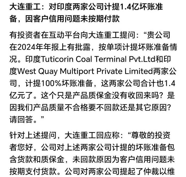 大连某公司被印度欠债1.4亿元追不回。 目前官司已经打赢了,向印度法院申请强制执行,但是印度的两家公司,正在走破产重整阶段的路线。也就是说,强制执行回来1.4亿元的可能性,非常之低。毕竟印度公司都故意破产,用来逃避付款了,那去哪里执行这笔款项呢? 不是博主多管闲事,事实已经发生,已经无法避免了。这里宣传一下,就是让大家以后注意避开印度的大坑。不是帮讨要费用,因为基本上要不回来了,要提醒其他公司,不要再犯错误! 大连某公司想要把印度两家公司的1.4亿欠款要回来,几乎是不可能了。也不知道是犯了某些方面的错误,没有收款就发货,或者说是签的合同错误,导致货款收不回来。只能说吃一堑长一智,希望国内的公司和个人,不要为了那些所谓的订单,就去接受印度人苛刻的条件。 尤其是付款方面,一定要注意,千万不要被印度人的花言巧语给迷惑了,一定要坚持先款后货。咱们只要见到款,肯定是发货的,从来没有不发货的道理,但是印度方面在公司和个人,本着能坑一次是一次的真理,绝对只要收到货,绝对不付尾款的。 你就像法国的阵风战机,到现在都收不到尾款。你想一想,连印度政府都不付法国阵风的尾款,还指望已经逃掉的订单付款?如果国内的公司,不明白怎么和印度公司做贸易的话,就多学一些比亚迪的操作手段。 电动大巴订单先收定金,先发车壳子,然后收到大半货款发电池,最后把电池锁死,把全款要到以后,再去解锁,所以比亚迪做的简直就是国内企业的典范。希望国内的公司和个人,多跟比亚迪学着点,什么才叫真正的做生意,比亚迪那是叫真正的做生意。 而不像这个大连某公司一样,货已经到印度手里,货款还没收。你就是起诉,赢了你也要不到,都要准备做坏账处理了,就是说款项要不回来了的意思。博主以前说过一百遍,和印度人做生意,千万要先款后货,不要被印度人所蒙蔽,100%会被坑的。 但是有些人还是不长记性,或者不会做贸易,被忽悠的太惨了,真的太无奈了。